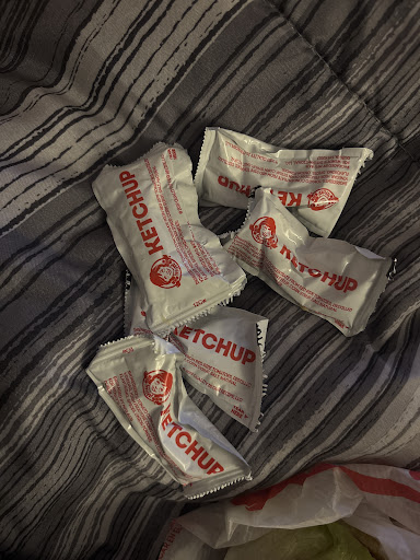 S/n: I was given five packs of ketchup, which is something I never asked for, but Brandon gave me a hard time with asking for one or two things of...