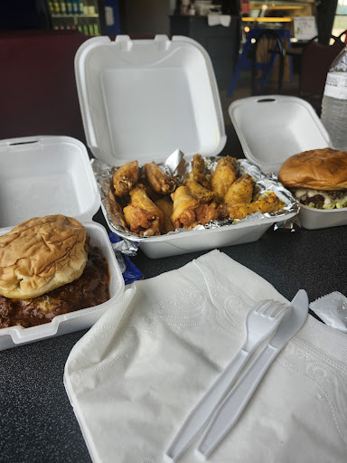 Second, the food is very delicious. All of their items are named after people. We had Baby Jayās double bacon burger, Steveās spicy double burger, fried cod and wings (8 or so different flavors to choose from). Patties are big so be prepared to eat. It had good flavor and was non-greasy. The fried codfish (2 pieces) was tender and the batter light. It was also not greasy. I wish I had two other pieces of fish (so tempted to order more). The fries in our combo were crispy, and yes, non-greasy. Wings were nicely fried. The three flavors we had were garlic Parmesan, spicy jerk and lime pepper. The latter two were our favorites. The total for essentially 4 items, fries and drinks was $47 (tax included).