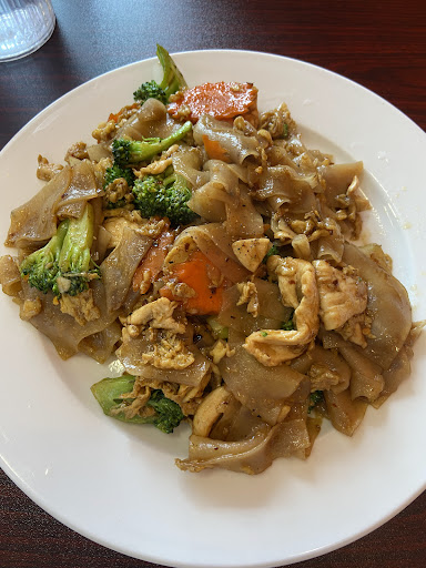 Upon entering, the waitress serving us was extremely friendly and kind. She promptly served us our waters and menus. From the menu, they had a variety of authentic Thai dishes. We decided to try a few dishes which included the chicken pad Thai, chicken pad see ew, and the green curry. The food did not take long to arrive (approximately 10 minutes after placing our orders).