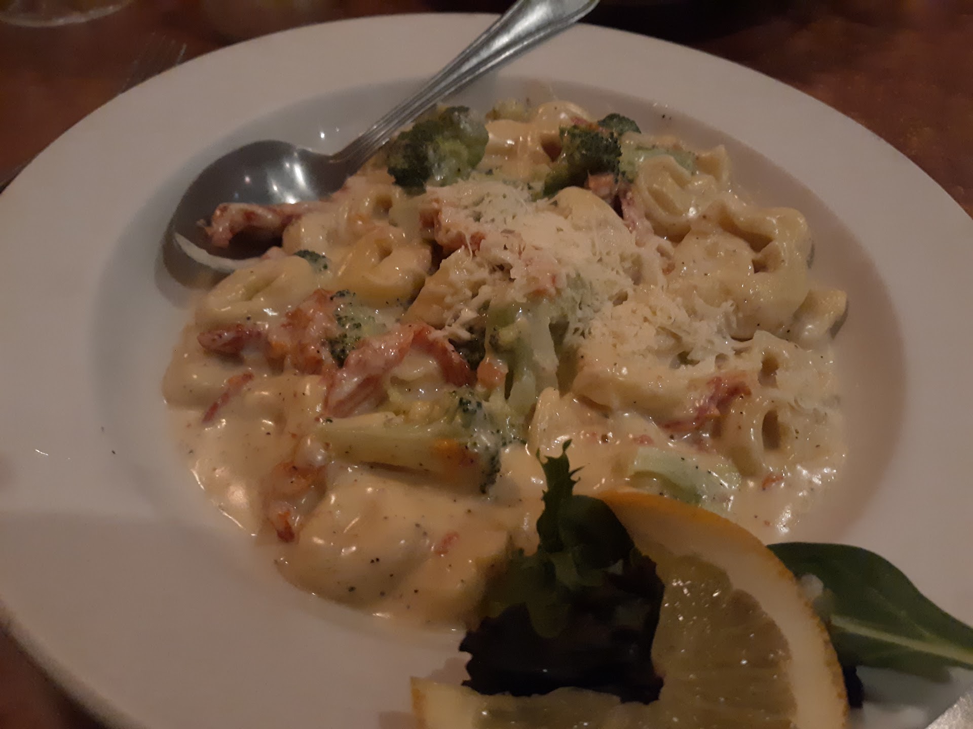 Our entrees were the parmesan crusted chicken and pasta, and though i was already getting full at that point, it was hot and fresh. The chicken was so tender and juicy that we were able to cut it with only our forks. I saved the rest of my meal to take home and left room for dessert: A hearty piece of tiramisu. I can honestly say that that was the best tiramisu I have ever had the pleasure of enjoying.