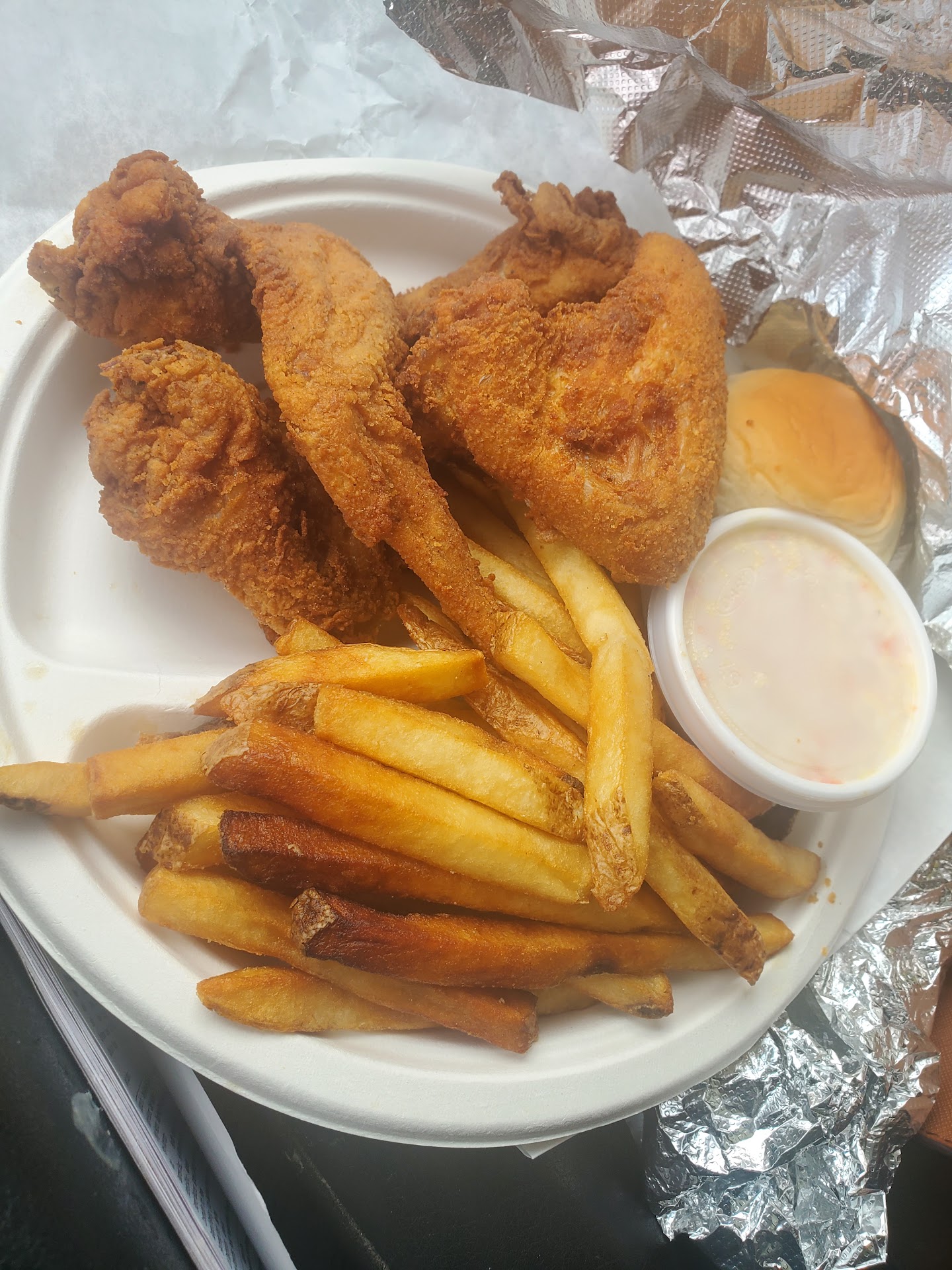 Ahhhh! The Henhouse Bar-B-Q...... To quote my buddy, the Photobomber, "This frikkin' chikkin' is lip likkin' good!" Or, to quote my dear friend Tonya J., "You've been Hen Pecked!". She's right! I really like the fried chicken here. Every time I come here, I exclaim that this is my favorite fried chicken. That is, until the next time I go to Greers Chicken in Bristol. They're both my favorites. I really can't decide which I like better. Tough dilemma, ain't it, having two really great fried chicken restaurants nearby? The fried chicken here has a mildly seasoned coating, and are large pieces, always perfectly cooked to a delicious golden brown, and served with a large number of optional side orders. French fries, onion rings, potato or macaroni salad, and cole slaw are all very good options to go with your chicken, ribs or fried seafood. Oh! Did I forget to mention that Henhouse also offers fish & chips, fried shrimp, and fried clams? All worthy of mention, in case your tastes run to seafood. Sort of "Chicken Of The Sea", I suppose. In addition, Henhouse also offers rotisserie roasted chicken, and barbeque ribs, things that Greers does not offer. I've yet to try those here, at Henhouse. I've heard they're very good. Maybe one of these visits soon. There are several booths in the plain, but clean dining area connected to the room where you walk up to the counter to place your order. They'll bring your food to the table when it's ready. Or you can get yours "to go". I think that's what most of their many customers do. There's often quite a wait, because the take out is so popular. I'll continue my internal debate about which fried chicken place is my favorite, but I think anyone would be well served to try Henhouse for any of their offerings. I don't think there'd be...