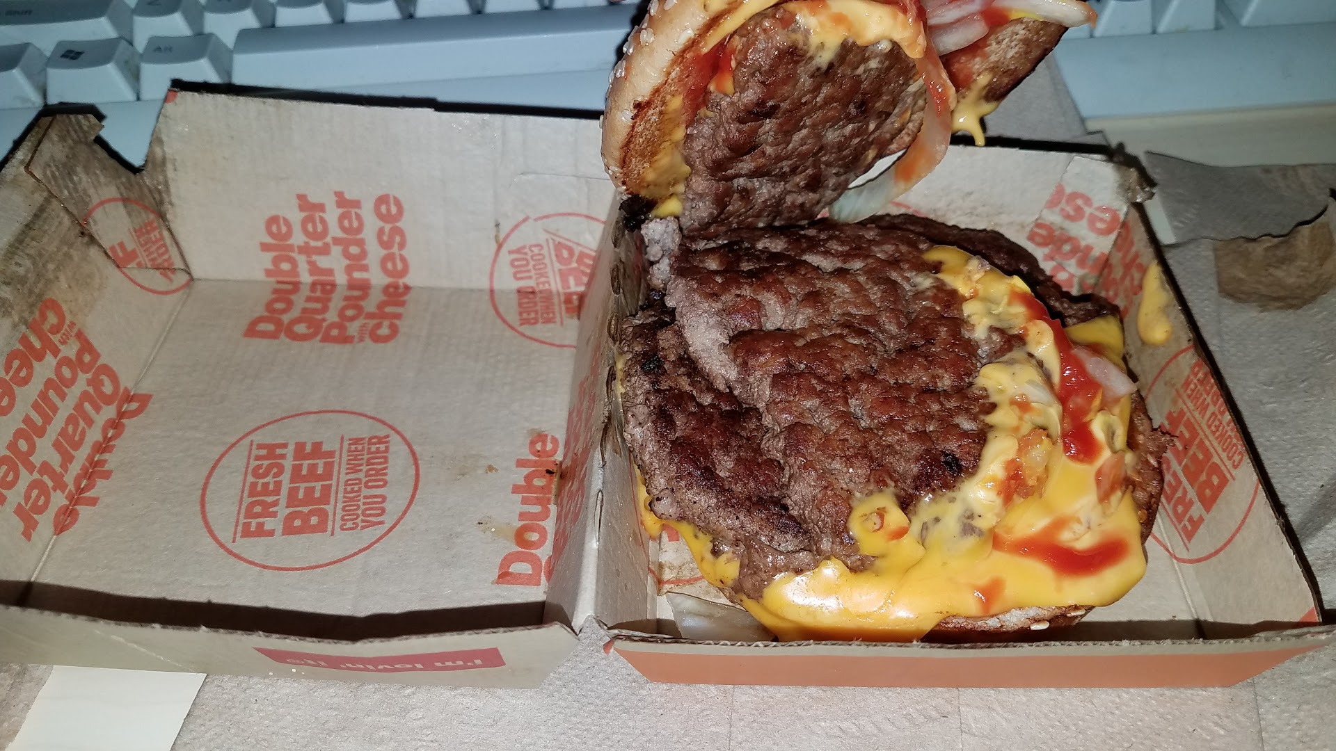 And the bun. Soft. Slightly sweet. It cradles the chaos within, a pillowy embrace for this magnificent mess. It's not artisanal sourdough, it's not some crusty, overly wrought affair that fights back with every bite. It's just⌠there. Doing its job. Holding it all together.