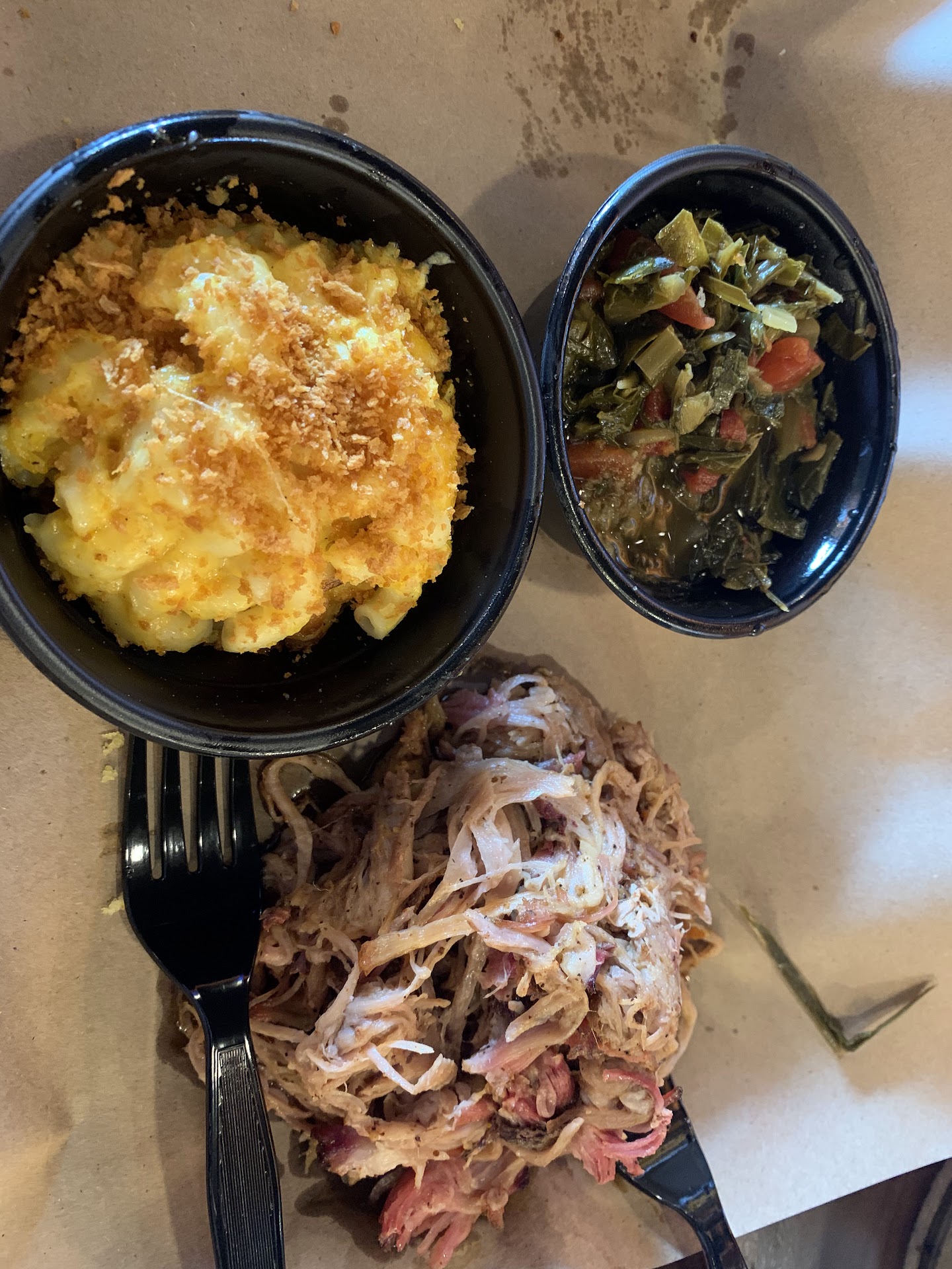 Read moreEveryone that’s gone told me they didn’t like it. I decided to try it myself and I’m glad I did. The customer service was outstanding. We were newbies and they guided us on what’s best to try. The restaurant was clean and I enjoyed the decor of the entire establishment. Especially the walls where the bathrooms were. I couldn’t get a photo because people were always standing there. I believe I started off with a lemonade which was yummy. I got Chopped Barbq, Collards, & Mac n Cheese. I am not fond of everyone’s cornbread so me not liking that is normal lol. The collards had tomatoes in them which I’ve never seen in my life but I enjoyed the flavor. The Mac n Cheese wasn’t anything special to me but it wasn’t bad just plain I guess. The Chopped Barbq was also plain looking which mad me nervous at 1st. Then I realized the different options for sauces on the table! That’s when the magic happened lol! I squirted a lil on each bit until I found THE ONE lol! I would definitely come again. UPDATE‼️So I caught a flat and decided to eat here again while I waited. Lol town fair tire called me and I literally had to dash out right after ordering. I came back and grabbed my cold food with no problem. They came over to me with a fresh tray since I had to run out. Love it! I can’t say enough how much I appreciate great customer service! Thanks Summer and the crew! You made my day☺️Side note I know my fav sauces now! It’s Bay-B-Que &...