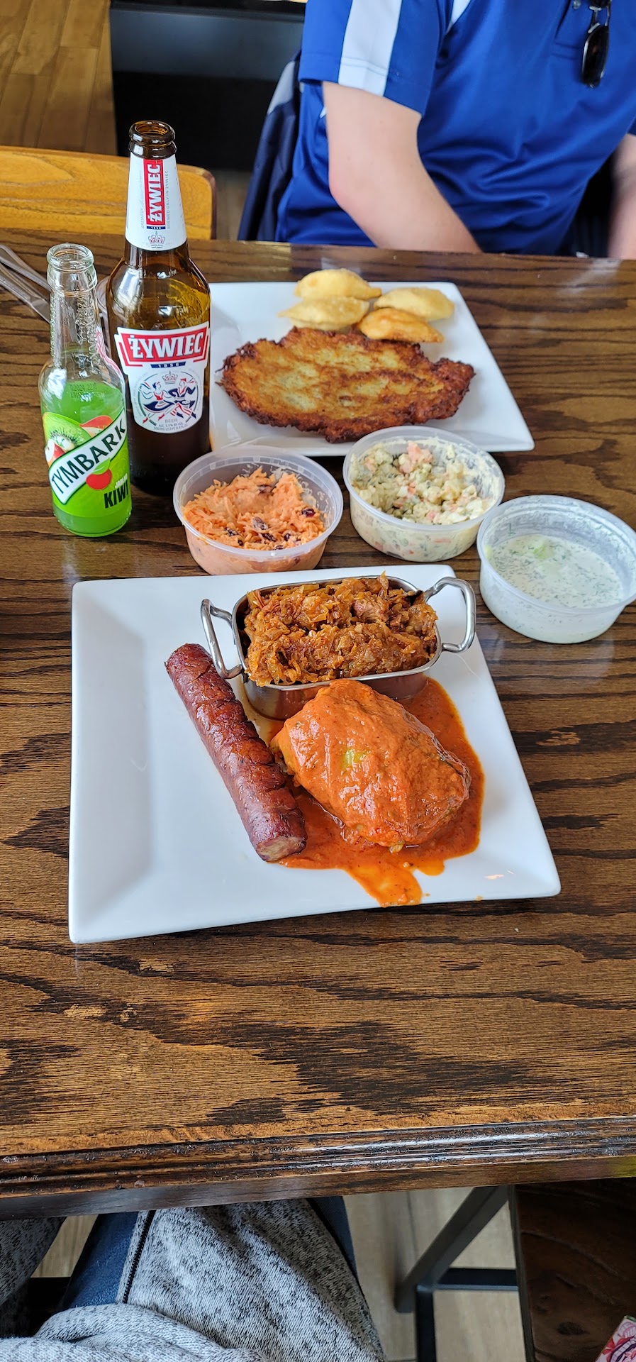 Read moreStopped in for take-out after a very long cold working day. I ordered 6 sauted pierogis. I asked the kid taking the order What was in the cucumber salad. His answer was I don't know and pulled one from the cooler. I asked that I could see the dill but what else was in it. Again his answer was I didn't know. So I told him if I couldn't find out what was in it, I didn't want it. He seemed irritated but put it back. My husband ordered the taste of Poland plate. We paid for our order and got the receipt stamped 6:09. We sat and waited and waited. We saw many people come in and go after us. Finally at 6:45 we asked what was going on with our small order. We were then told they ran out of 2 of the pierogis and they were making them. We asked how much longer and were told 5 minutes. We should have been told they were out of whatever they were out of and we would have ordered from the choices that were available when we got to the restaurant. Regardless, Finally at 6:50 we got our food. Went to our hotel to find no condiments, napkins or utensils. We weren't asked if we wanted ir needed any. The Taste of Poland platter was missing the stew. All the food was bland as well as the pierogis. Don't get the strawberry pierogis. So bad I took one bite and threw them away. Besides the fact they were not sauted as we requested. Horrible service and horrible food. When in this area again, we definitely will...