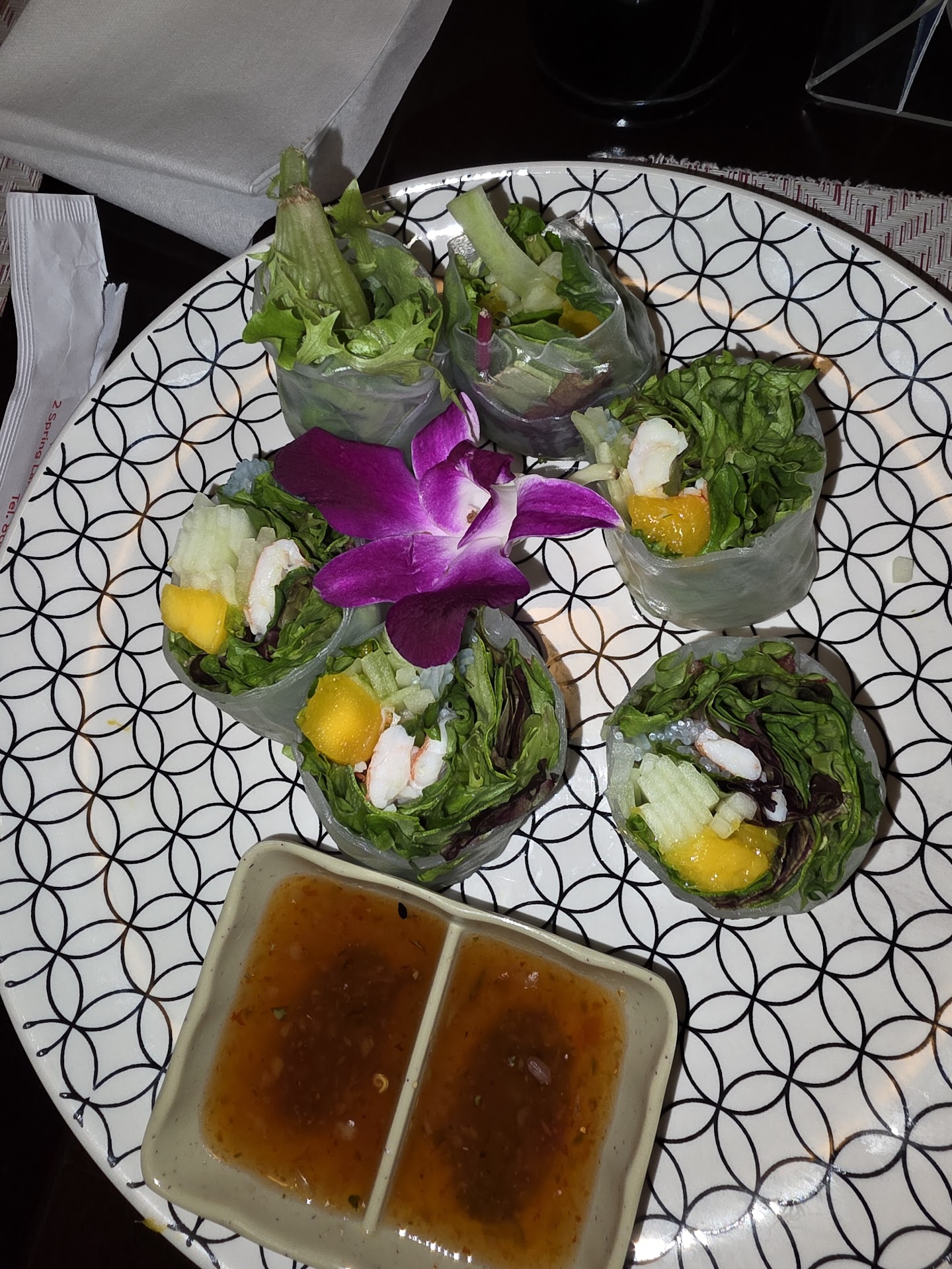 Read moreI ordered the sashimi regular, calamari appetizer, sake, mango sticky rice, and vegetable spring rolls. The sashimi was pretty good — fresh and nicely presented. The calamari was a bit bland and could use more seasoning. The vegetable spring rolls were actually really good — I especially liked the mushrooms inside; they added great flavor and texture.