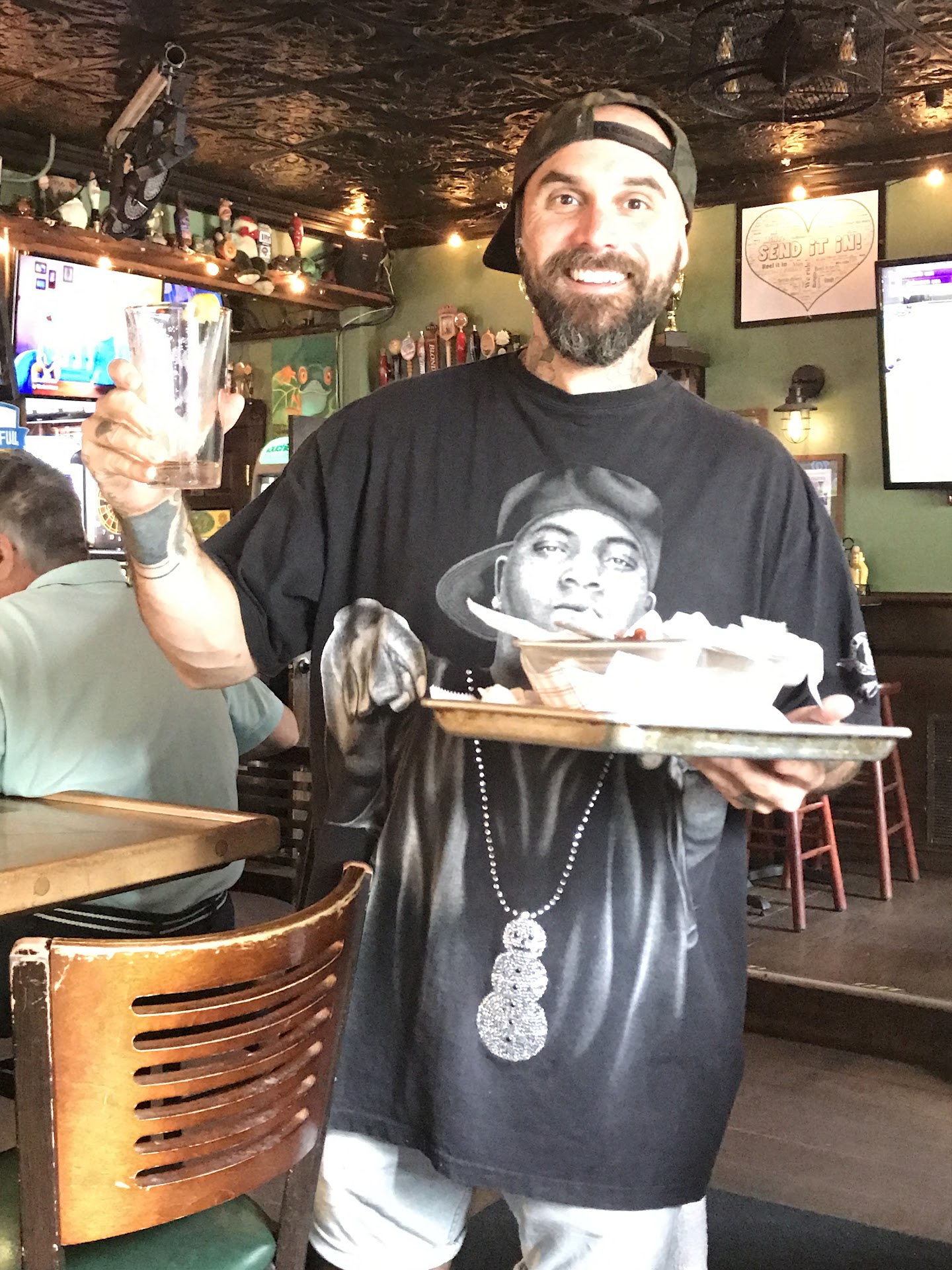 Read moreWe tried this place by recommendation of someone we know, and what a disappointment. The atmosphere is fine, a cool pub feel, but we got concerned when we sat down and there were fruit flies around our table and dirty barware on the window sill. The bar was 3/4 full and 1/2 the tables occupied but the service still was not good at all. Our server cared more about smoking cigarettes outside than she did tending to her tables. We ordered 4 types of wings to try a broader variety: buffalo medium, dry rub Caribbean jerk, cool ranch, and chipotle horseradish. First of all, our wings sat on the server window for at least 10 minutes, and we considered going to pick them up ourselves because our server was outside smoking - again. When she did bring them over, the flung them onto the table and walked away - she didn't say a word, not a "can I get you anything else, drink refill or anything?" Nothing - sorry for the inconvenience and for interrupting your smoking time - and each time she came in, we didn't see her wash her hands either, gross. Needless to say our wings were cold but we didn't bother sending them back when the service sucked that bad so far. The buffalo medium was Franks Red Hot, the dry rub Caribbean jerk was actually wrong and was Old Bay, the cool ranch were basically BBQ wings with crushed cool ranch doritos on them, and the chipotle horseradish barely had any flavor at all - not smoky at all, no zip from the horseradish, nothing - and they were cold. We waited for our server to come back but she was outside smoking again so we had to cash out at the bar so we could leave. Terrible service, dull cold wings, and fruit flies - go elsewhere, this...