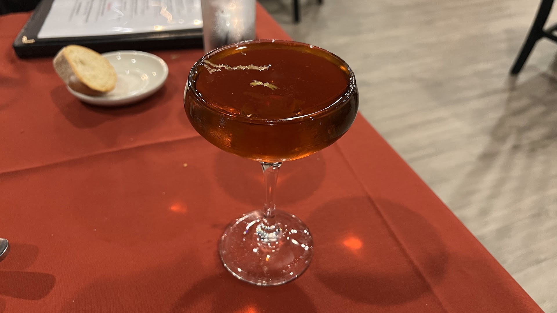 Southington Manhattan: So this place offers many variations of The Manhattan, but the Southington version features Bulleit Rye or bourbon, Dolin sweet vermouth, orange bitters and an expressed orange peel. This was a great take on The Manhattan, but was not better than the original, not worse either. Lol.