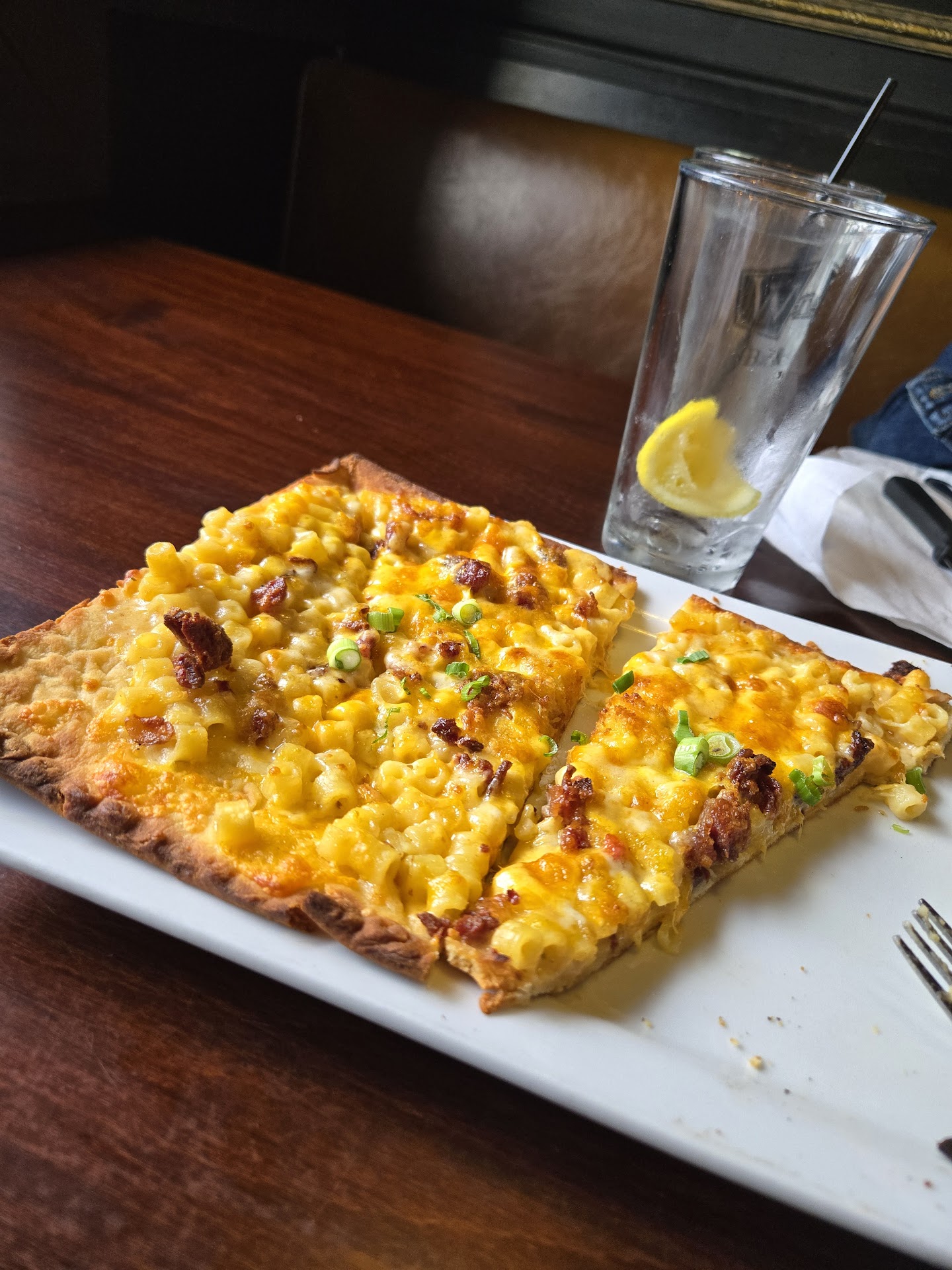 The mac and cheese flatbread was a 10/10 - very well seasoned mac, salty, a hint of spice, and the bacon and scallions balanced the flavors and textures. The Mac was cheesy but not bland at all. Would absolutely order this again.