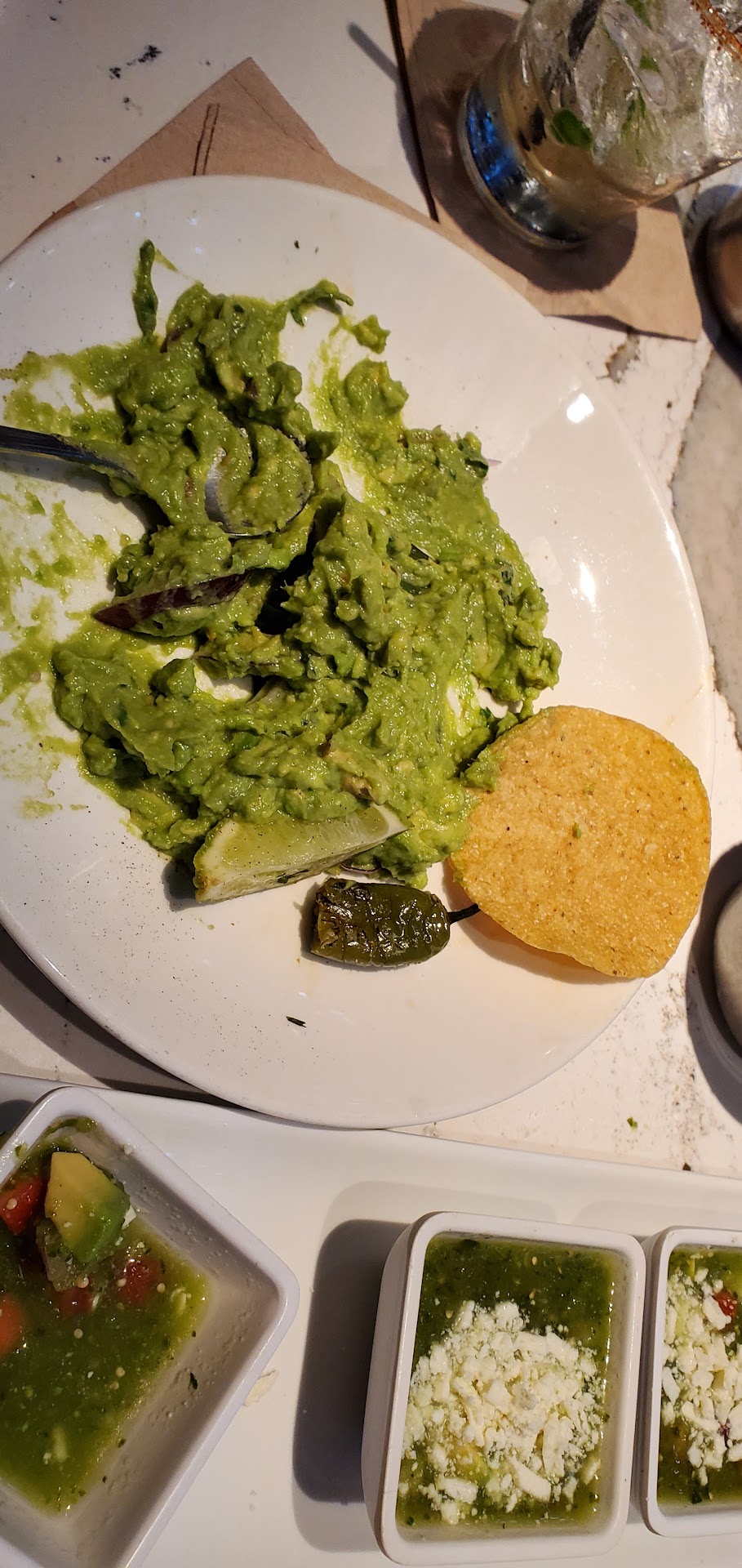 Read moreI honestly don’t know how this place has the reviews that it does. The only positive thing I have to say is that our waiter was very attentive and kind. The seating is so close to each other I was basically sitting with strangers. Every time staff would walk by they would bump my chair. The drinks were atrocious. I had the Paloma, my husband had the Mezcal Mule. My paloma tasted terrible, and my husband drink tasted like smokey dish water. The chips were so saturated with oil that it was more like eating a chewy stale tortilla than it was a chip. We ordered guacamole, and it was basically a flavorless mashed avocado with maybe 4 slices cherry tomatoes to make it look pretty. I ordered the Misero Carbon with chicken and when it was brought to me it just two rolled tortillas cold dry sliced chicken inside, no other toppings. I was given guacamole when I asked for queso and I was using my husbands fajita toppings so make my food edible. Every moment since we have left this restaurant we keep angrily laughing about how we spent so much money hoping it would get better that never did. This is honestly the worst restaurant we have ever been to, and it has literally left a bad taste in our mouth. I’ve never thought it to be necessary to write a review before, especially a bad one, so this is a first. Don’t waste...