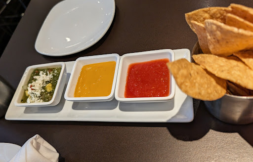 We had an outstanding experience at mesero- one of those meals where everything just clicks, from the service to the final bite. First off, the service was top notch attentive without being overbearing and our server was knowledgeable and welcoming from start to finish. We started with the duo appetizer with avocado tipico- a simple yet delicious combination made even better with the white queso. The textures and flavor flavor balanced beautifully. The chips and trio of salsas that came with the meal were a real highlight. Each salsa had a distinct personality- some bold, others more subtle and bright. It's clear a lot of thought went into crafting each one. My wife ordered the daily fish tacos featuring blackened cod. The fish was perfectly cooked, moist and flavorful with just the right amount of spice. The accompanying sauce brought it all together without overpowering the freshness of the fish. I had the El Miguelito which was a satisfying and well-rounded plate. The standout was definitely the brisket taco- rich, tender and packed with flavor that tejano enchilada and chicken enchilada cremaqueso added their own unique notes, both delicious in their own right. The macero slaw on the side was incredibly tangy and refreshing cutting through the richness perfectly. Every dish was plated beautifully with vibrant colors and a clear eye for presentation. The creativity and care in each dish truly elevated the entire experience. Will definitely be...