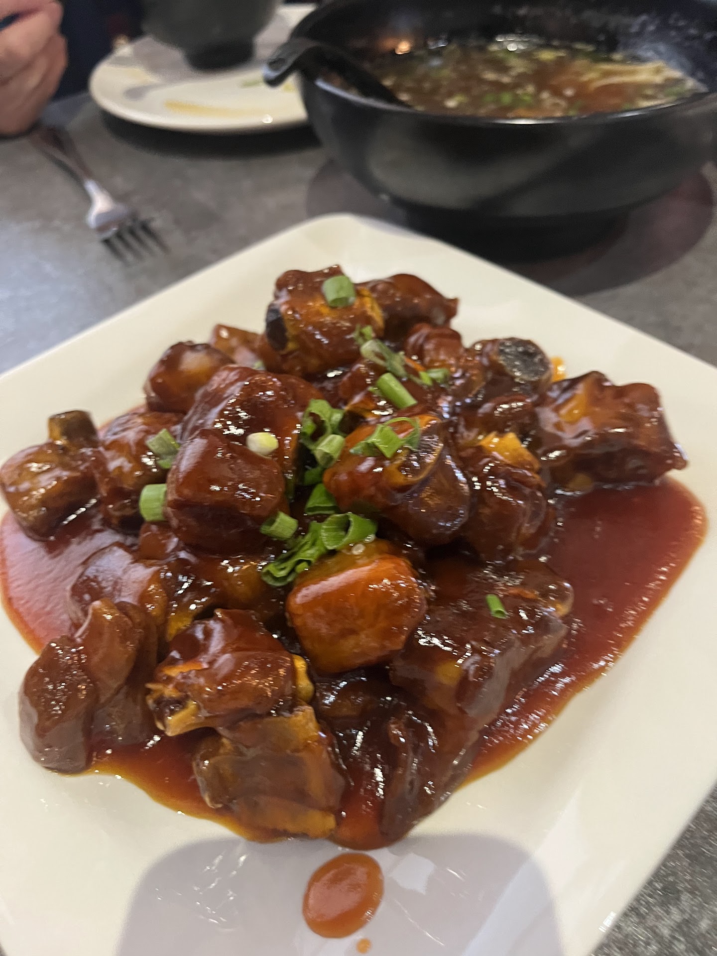 Entree: Stir fried noodle with beef and sweet and sour pork rib. Stir fried noodle with beef was ok. Except they used the wrong type of rice noodle. Pork rib is another money down the drain. The driest, tasteless, overdone pork rib I’ve ever had.