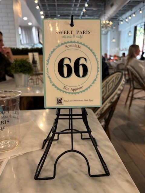 Been hoping for a good crepe restaurant in the area for a long time. Sweet Paris looks like it has the potential to fill that void. This is a fast casual restaurant with a pretty wide menu of crepes, both savory and sweet. To me, sweet is easy once you get the crepe recipe right. It is savory that requires a chef’s touch. They get both right. My wife had the Ham & Gruyère and I had the Chicken Enchilada. Both were excellent. Also good size and the soft folded crepe style, not the crisper handheld style that some restaurants offer. Subtle flavors, perfectly cooked, perfect temperature. The savory crepes come with a nice side salad as well. We then ordered an Apple Cinnamon Crème Brûlée to take home for later since we were plenty filled by the meal crepes. Here is where things went wrong. While our savory crepes took about 12 minutes to arrive, which is a good service level for a made to order fast casual restaurant, the sweet crepe took 45 minutes. We had nowhere to go and were having a conversation that could have taken place there as well as anywhere, so we waited it out. Since I knew I was going to do a review, I also wanted to see how long it would take. The manager checked on us about the time we had just ordered the sweet crepe, so all was good. 15 minutes later she checked again and we were getting impatient. I went up twice to just say cancel it once we hit 30 minutes and she twice assured me it was coming out within a minute. Admittedly, we were there on their third day open and they were having a bit of a lunch rush, but still, it was a sign of a system not quite right. The manager explained that to go and eat in orders were getting mixed up in the flow and had everything backed up. I did not personally witness many people waiting for to go, and every table was not full in the restaurant, so that excuse did not hold. When the manager finally did deliver our crepe she gave a simple “sorry about the weight.” Having interacted with us four prior times now, she knew how long it took, so a refund or a coupon for a free crepe on a future visit was in order, but did not happen.