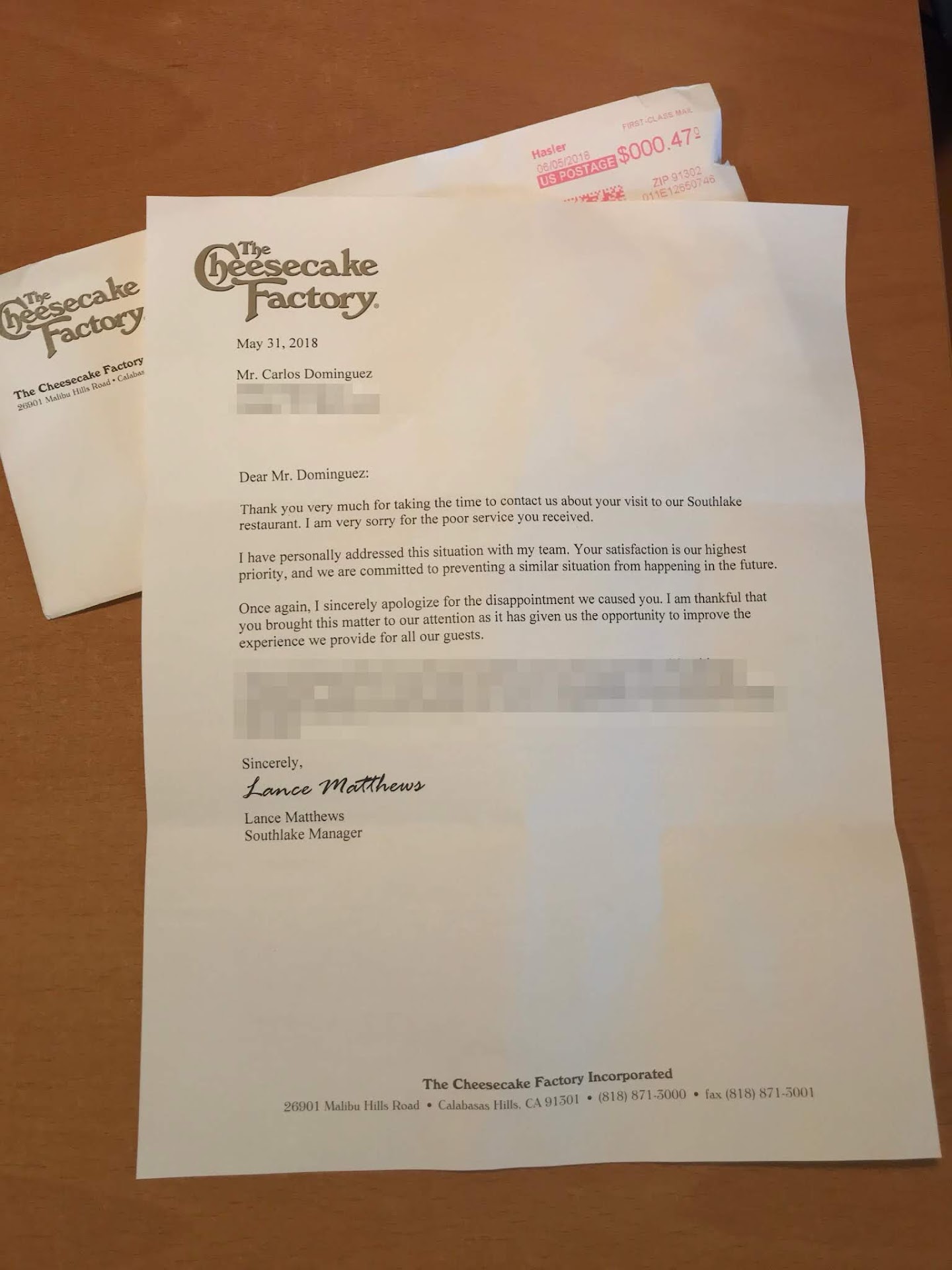 While we did have an initial bad experience, understandably things will fall through the cracks from time to time. The letter received and the managers response does seem sincere. From a restaurant guest perspective: I can't think of anything else that management could do to make us feel more welcome then to offer us a second chance to come back and experience their true hospitality. Many good reviews for this location so I'm confident things will go well.