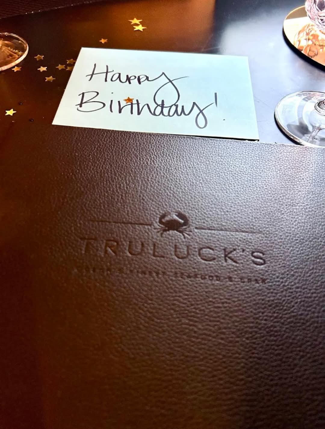 My Wife and I recently celebrated our anniversary at Truluck's, and the experience was nothing short of extraordinary. From the moment we stepped through the doors, we were enveloped in an atmosphere of elegance and warmth that set the tone for a perfect evening. The customer service is exemplary. From our initial reservation to our departure, every interaction was marked by genuine warmth and professionalism. We were greeted with smiles and escorted to a beautifully set table adorned with a discreet "Happy Anniversary" card, a thoughtful touch that immediately made us feel special. Our server was attentive without being intrusive, ensuring our glasses were never empty and our needs were met promptly. The entire staff demonstrated a level of attentiveness and care that made us feel like the most important guests in the restaurant.