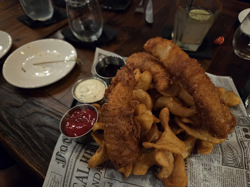 First time here and I booked it for my sister's bday dinner. 9 of us. I thought it was restaurant with a bar but it was more a bar with a restaurant. Lol. It was all about prohibition era themes. Great interiors and the seating for the group was great and comfortable. Girlfriend and I arrived 30 minutes early so we sat at the bar and took advantage of the happy hour. Half priced drinks and a few very well priced food items. Ordered the Irish American old fashion and the mezcal skinny. Old fashion was far better! To eat we tried the tuna roll and it was very tasty but had too much rice in my opinion. Only one bar tender so you have to be a little patient but overall bday experience was great and I would definitely come back for happy hour! We got seated for dinner and I ordered the ahi tuna salad and steak frites. I do want to say I ordered the salmon roll from the raw bar section and it came out as smoked salmon. Idid return it as we did not want cooked or smoked salmon. It did not state it was smoked and it's under the raw bar party of menu, so I thought that was misleading. No issues sending it back though. I wanted to try the fish and chips but my mom ordered it so I would just try hers. Salad was good, tuna was flavorful, but the salad just needed a better dressing or another kick. It was average. Steak frites with truffle fries (huge amount) was OK because of the shoestring fries were addictive. The steak was ordered medium but came out well done so that was very disappointing. It made it tough and dry. I think it would have been good if cooked properly. The fish and chips were very tasty and came with steak cut fries with a great seasoning as well. Everyone seemed to enjoy their food more than we did but sometimes you win and sometimes not. The service was great and attentive. They did provide a key lime pie for the bday girl which we appreciated and I ordered the chocolate cake (they don't have the 13 layer one that is shown in website however). It was OK... all in all, I do recommend this place, especially...