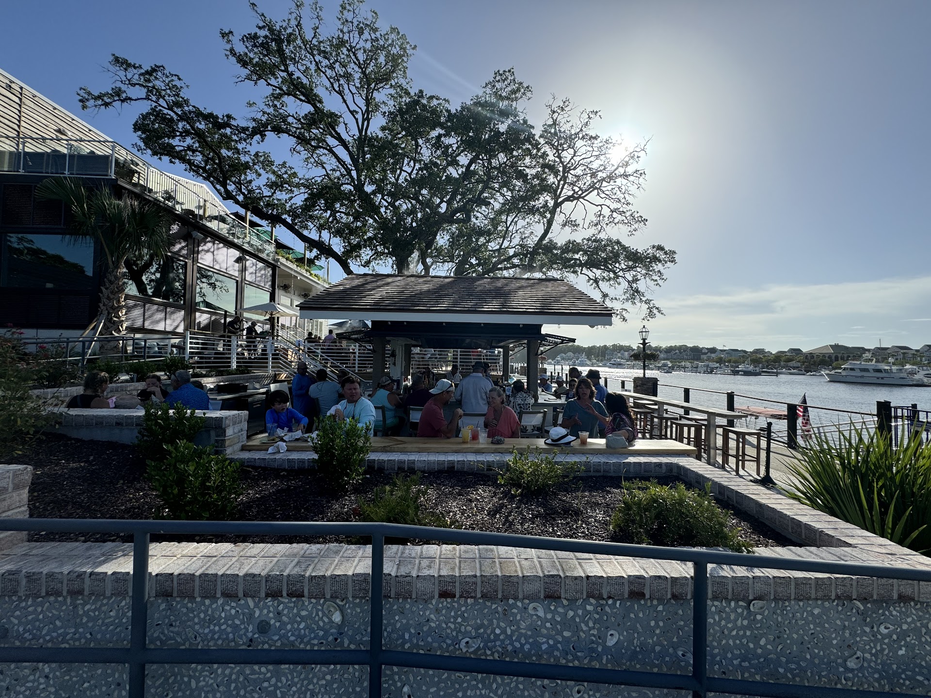 It was terrible experience due to a new manager. I think his name is Zack Wooden. From the minute we walked in he had a bad attitude towards us he asked exact how many were in our group. I said about 30. He said he didn’t want about. He wanted the exact number. I said I haven’t counted. It might be 29. Might be 31. But approximately 30. He said NO! With a nasty attitude. He said get everyone up there for a head count before anyone sat down or ordered. So I yelled for everyone in jetfest come up front. Then he said NO! Just leave. He said we were taking up all his dock space. It was almost 2:00. Lunch rush was over. Lots of empty tables and no boats waiting for a slip. I explained one boat would fill up a slip with only 2-4 people. We have 8-10 in each slip and we spend well and tip well. He said he didn’t care. So I walked away and let some of the ladies try to talk reason with him. They explained we didn’t have to all sit together. He said NO! We must all sit together and be on one check with gratuity added to the bill. They told him we couldn’t do one check but needed separate checks per couple. He said NO! Leave now. He didn’t want our business. We probably would have spent close to $3,000 at the slow time of his day and tipped more than the 18% he was going to add to the bill.