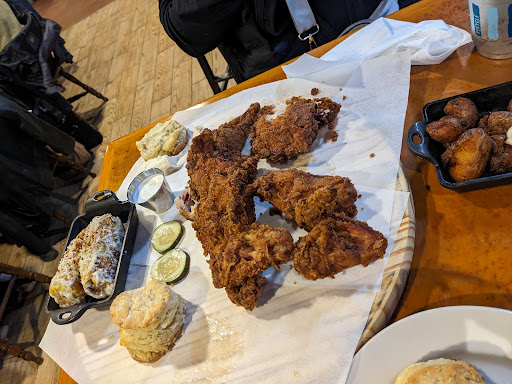 When the food finally came out, the salad was literally two large romaine lettuce stalks lathered in cole slaw (literally like they took a brush and rubbed mayo over two pieces of lettuce?) with thinly grated cheese sprinkled on top. That's it. We did ask for no croutons, but even with that, wth kind of salad is that? In retrospect, I should've taken a picture, but we were so hungry and in a rush to catch sunset at that point. The oysters were good, fried chicken was good, and the biscuits were ok at best. Nothing felt worth the wait, however.