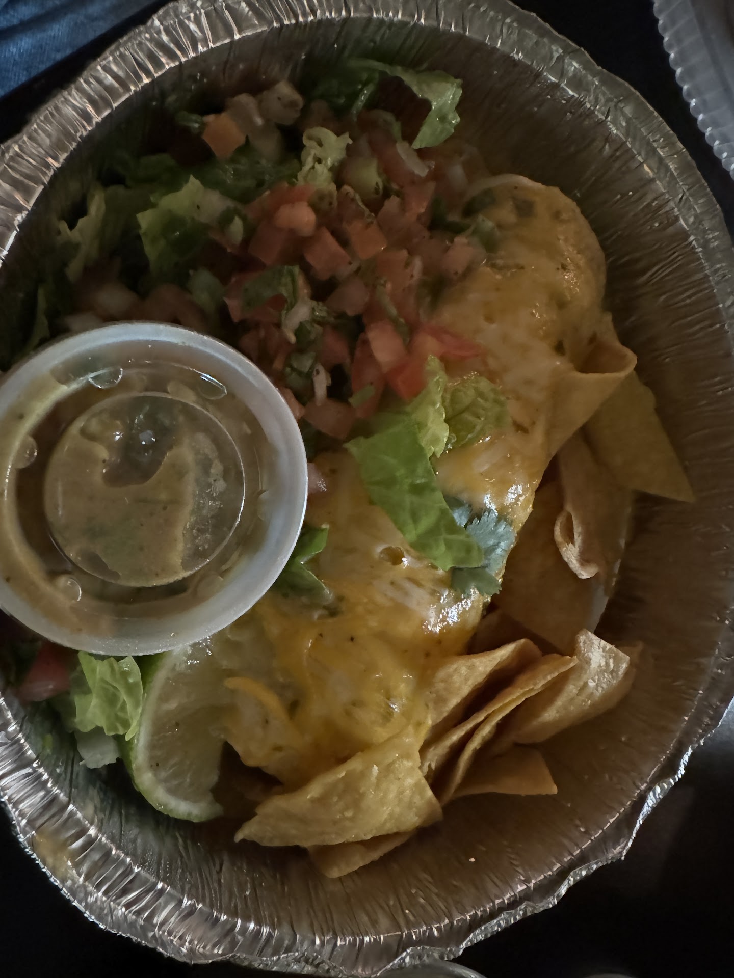 Read moreI wish I would have read the reviews before we went instead of trusting the 4.2 star total. I ordered a medium burrito with chicken. The description indicates it comes with sour cream and sauce. There was zero sour cream in the burrito and it was pretty dry, so I think they also forgot the sauce. They also don't add much meat considering there's an addtl charge. I'd guess maybe 2oz. I also really disliked that they wrapped it in paper and foil, as the paper was pretty soggy by the time we got home (15 m after pickup). My husband ordered the large chimi and it honestly looked great. He said it tasted great, but it did seem like they layered it in such a way that it was an inch of meat, then two inches of rice and beans, etc. So not well combined overall. I doubt we'll ever get food from here again. Nothing special about this place and I cannot stand when the food is not made according to their own specifications (i.e. missing ingredients). It's disappointing and not worth it to drive back for them to fix their mistakes. You'll find more flavor and value by going pretty much...