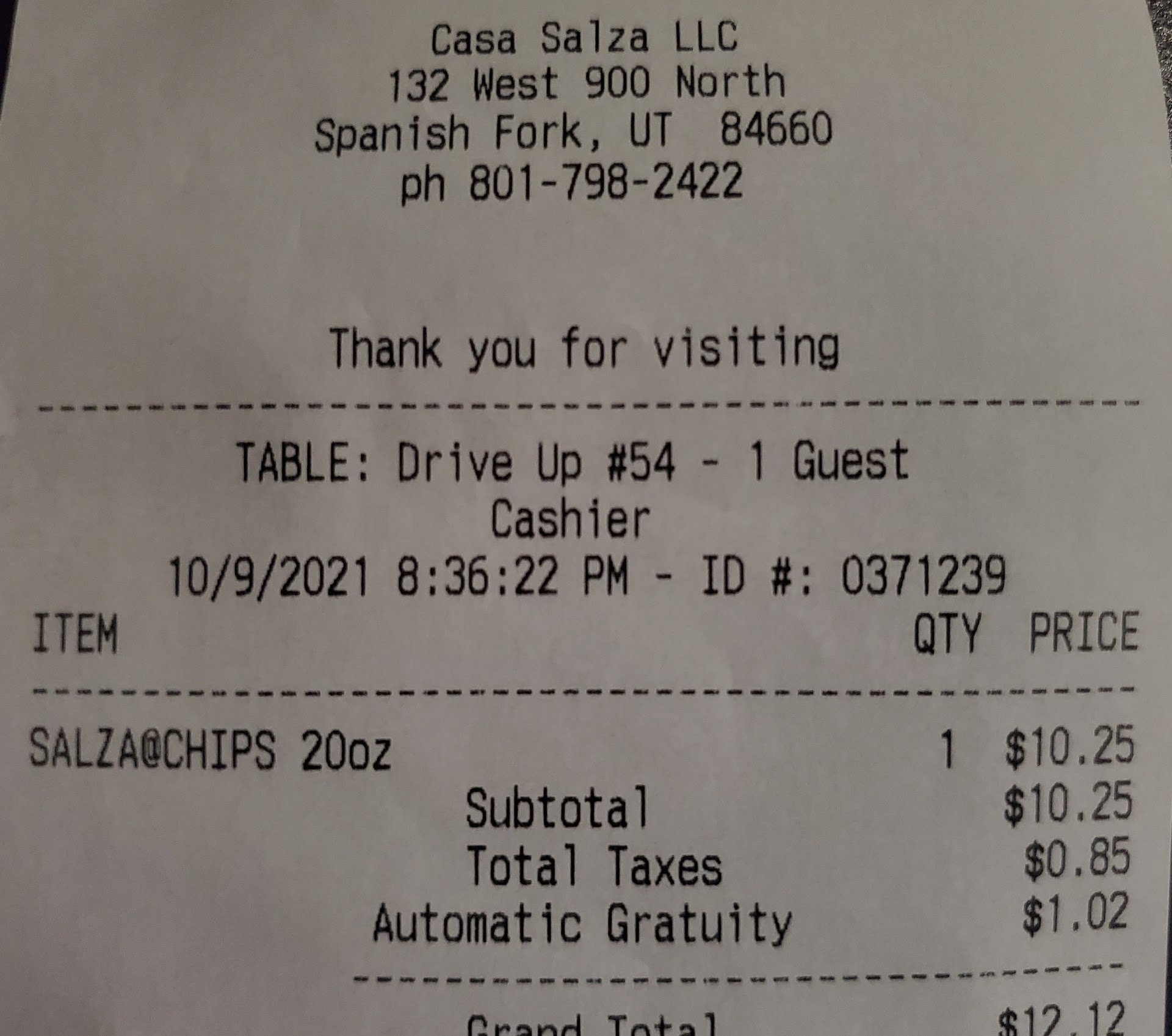 Read morewe love casa salza. we live in orem and drive the 14 miles to spanish fork for their food, it’s delicious. they are generous on the amount and the salsa is to die for. tonight we were very frustrated and upset with the service we received. we walked in and ordered. as we were waiting for our food, this girl messed up two of the orders that were in front of us and gave customers the wrong orders. we saw our food done on the shelf ready to be bagged. our food sat there for 6 or 7 minutes while they sat and argued about the wrong orders being handed out, then she went and took someone else’s order that pulled up at the drive thru window instead of quickly putting the food in the bag and handing it to me (and half the food was already in the bag ready to go). so while 3 people are there arguing, and she walks away again to go take an order…our food is on the counter getting cold and soggy. I was ready to ask if I could bag my own food. poor service. and last time we got home without our salad dressings, what’s a salad without dressing? make sure you check your order before...