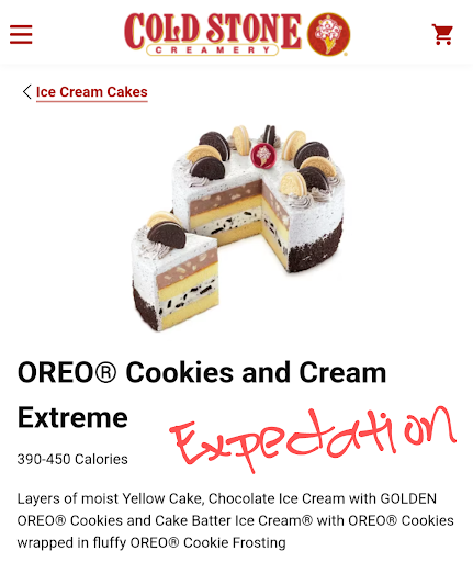 Read moreThis is the first Cold Stone location I have been to. It used to be good but has really gone downhill. The ice cream is constantly melted and they don't even mix in your ingredients. Several times a young employee here has made my ice cream with the wrong ingredients, then fought me on it when I said that wasn't what I ordered! Even though others around me told her that she heard me wrong. The customer service is generally poor here. I bought a customized birthday cake online here, and when my wife went to pick it up they did not have it ready (even though we received a confirmation email stating that it would be ready to pick up). Not only was it not ready, but instead of apologizing, they told my wife that the flavor options we choose were not even available! So that's why the cake wasn't ready...and instead of calling us to tell us that the flavors were not available, they instead decided to just ignore our order. We used the cold stone online cake builder and just selected the boxes of the flavors we wanted, there were no special requests. If they don't have those flavors, maybe they shouldn't have the option available online. But even after all that we still needed a cake, and instead of them offering us a cake free (or even discounted) in return for all our trouble, they said we could PURCHASE another one in store (after we already paid for the custom online one)... As if I was going to spend more money there. Of course I wanted to speak to the manager, so one of the teenagers lied and posed as the manager, I later found out he was not a manager there. That's what happens when you deal with teenagers and workers posing as...