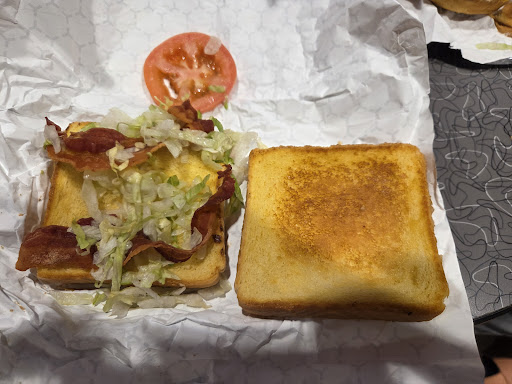 May 24, 2025 9pm. We ordered a BLT and onion rings. The onion rings came very burned. We took the food back so we could get some that were not burned. As soon as we approached the counter the employee said "I know, I know". In other words she knew what she was serving was sub par. I attached a picture of the BLT. One tomato slice, a disgrace of lettuce and 2 pieces of bacon. We obviously took it back, hoping to get it remade into something that was edible (or something worth the $6 we paid). The self-proclaimed manager, supposedly 21 years old who claimed to have worked here for 6 months. First gave us the name Kevin, then his name changed to Edgar. Whatever his name, he approached us very defensively and even said that we couldn't talk to him in the way we were. We were simply trying to get a new sandwich. The self-proclaimed manager claimed to not understand us, even though we're both speaking English.The self-proclaimed manager couldn't even find a pen that worked. The other employees through the window, were laughing throughout the whole exchange. All around the restaurant there was evidence of terrible management and lack of general upkeep as evident by the attached photos. The men's bathroom was absolutely disgusting, so much that we felt dirtier after washing our hands in there than before. In the end, we finally got a refund out of this situation. We will absolutely not be back to this establishment which obviously doesn't care about its customers or service. One bit of advice, maybe save on sauces and amount of extra ice cream and give the customers what we order.
