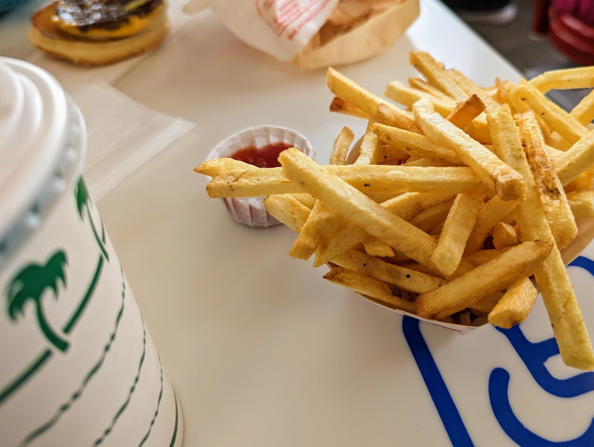 I made a fun experience out of it. I had some exchange students from Taiwan with me, and they loved it. It was a good end to a very busy day. Everybody loved their burgers, the kids all got doubles and triples and ate them easily. I loved the fries, but not everybody rated them as the best they've ever had, and I guess I didn't either but they were certainly on the great side.