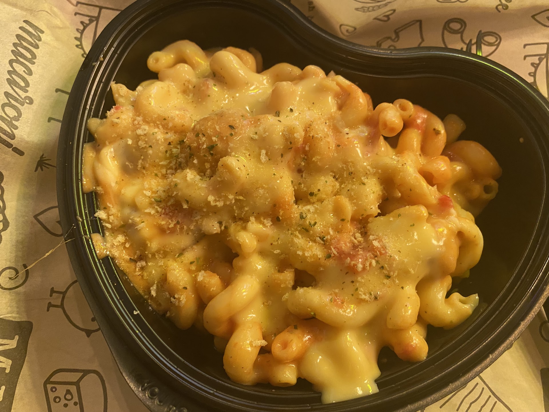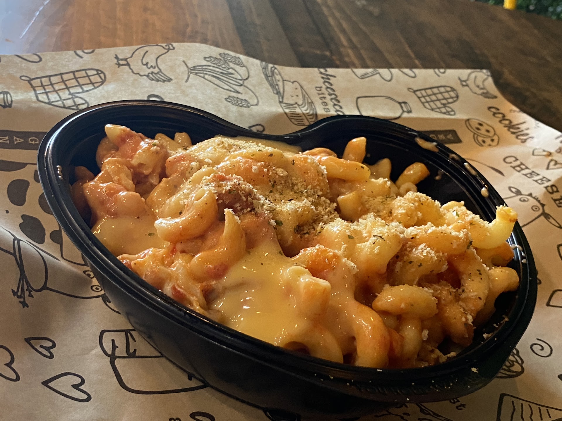 Read moreThis is a hard review to write as my wife and I were looking forward to this opening so much! We love Mac and cheese and we t for lunch yesterday during their grand opening. I got their Mac and cheese brisket sandwich which was pretty good. My wife made her own and was really excited for it, but there was nowhere for us to sit. For the grand opening they decided to do a raffle drawing. Of the 6 tables they have in there, they took one up for the raffle drawing, and then a few others were taken by people who already ate and were just waiting to see if they would win a prize. Not great planning in such a small space. Because of the seating issue we took our food to go and ate at home. We don’t live super close and went on my lunch break so there was no time to go back, and when we sat down to eat we realized they had given my wife the wrong order, instead of the bowl she made, they gave her the chicken parmigiana bowl which she couldn’t eat because she’s pregnant and tomatoes make her nauseous. It also doesn’t travel well, most our food was soggy, especially the tater tots, by the time we got home. So while our expectations were very high, unfortunately this place will need to work out it’s kinks before it’s ready to offer a quality experience. We really...