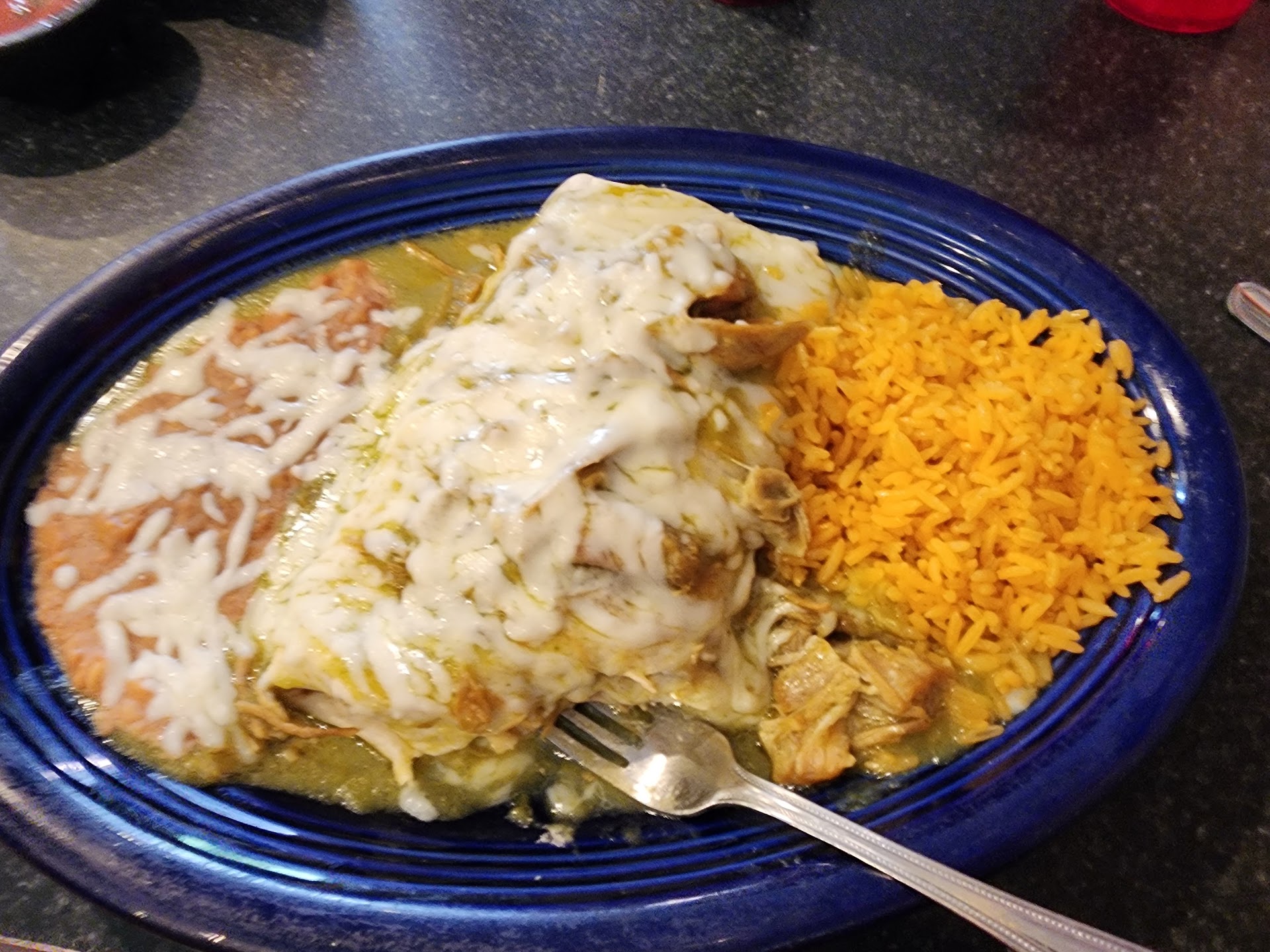 Ā Ā Ā Read moreOrdered the chili Verde burrito. Great portions I couldn't even finish it all. Unlike other places they STUFFED the burrito with pork. I just wish the chili Verde had flavor the color green (verde) was there but the flavor wasn't present. Pork tasted alright it had a similar flavor to a pork roast which isn't bad just odd to me (I've had alot of chili verde). Beans were okay and the rice was okay. Atmosphere is that of any typical Mexican restaurant. Service was FINE š my waitress didn't seem to care to much about working there but she did come to check on me a few times. THE PRICE WAS OUTRAGEOUS!!!! With the burrito and a drink my meal was over 18 dollars if you add in a tip like I did your spending like 25 bucks for a meal. I suggest giving the place a try but definitely don't put it at the top...