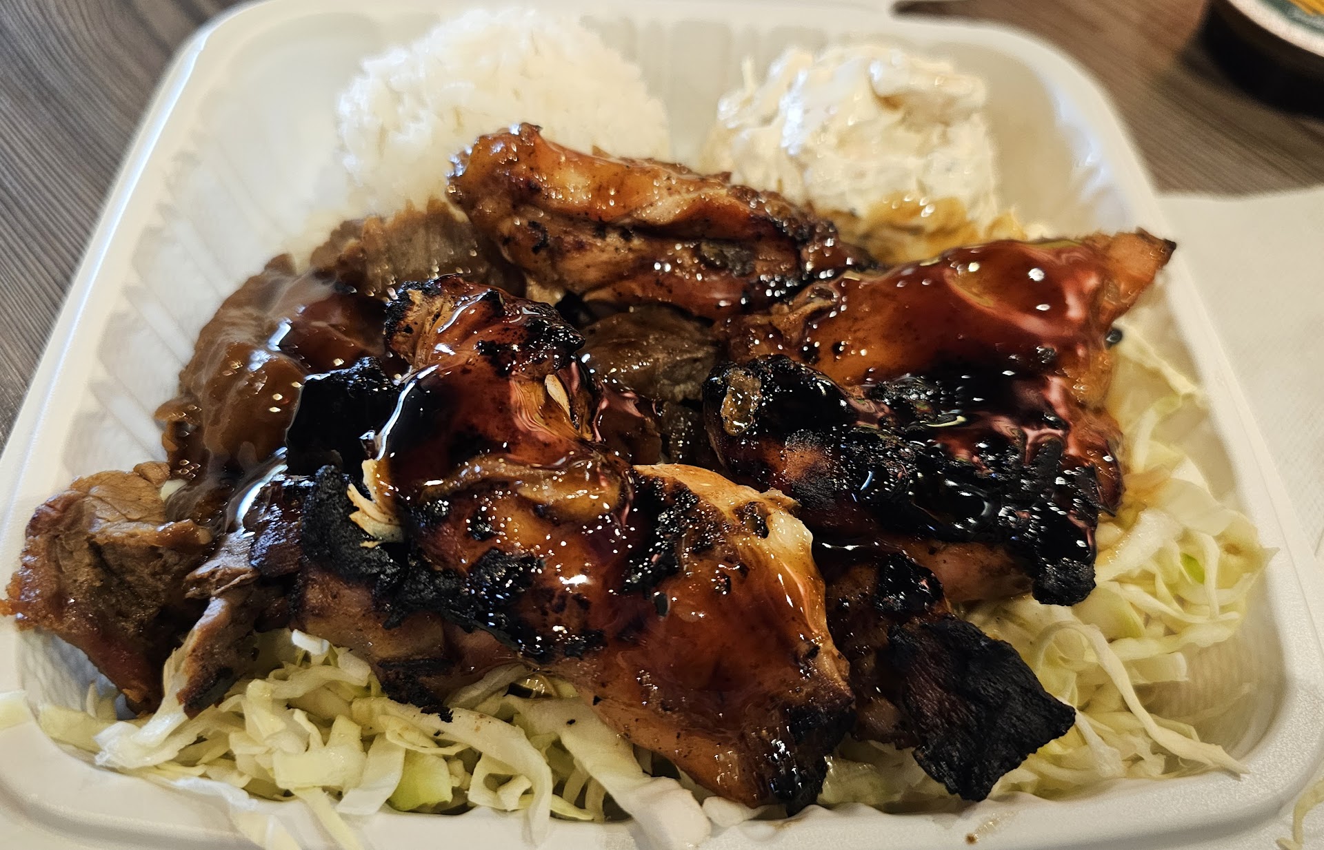 Ā Ā Ā Read moreAs much as I love the food here, Iām really confused why Iāve tried to order the same thing 4 different times, and even though itās on my receipt, it never comes the way itās ordered :( Iāve even tried ordering different plate sizes, kids meals, no matter how I try to order, Iām ALWAYS given the teriyaki chicken. I order double kalua pig (itās my favorite), like I mentioned, itās always shows up the way I ordered on my receipt, but, there has NEVER been a time I havenāt received teriyaki chicken. I personally am not a fan of the char, I donāt know how else to try and order and not get it, Iāve tried everythingā¦. :( itās not once or twice, itās every single time I have ever eaten here. This time I ordered a tossed salad, and was indeed charged for it, but got Mac salad instead. I work in the food industry, and I definitely understand mistakes, and hate to leave reviews. I just canāt wrap my head around the fact Iāve been charged for what I ordered 4 different times, and itās never...