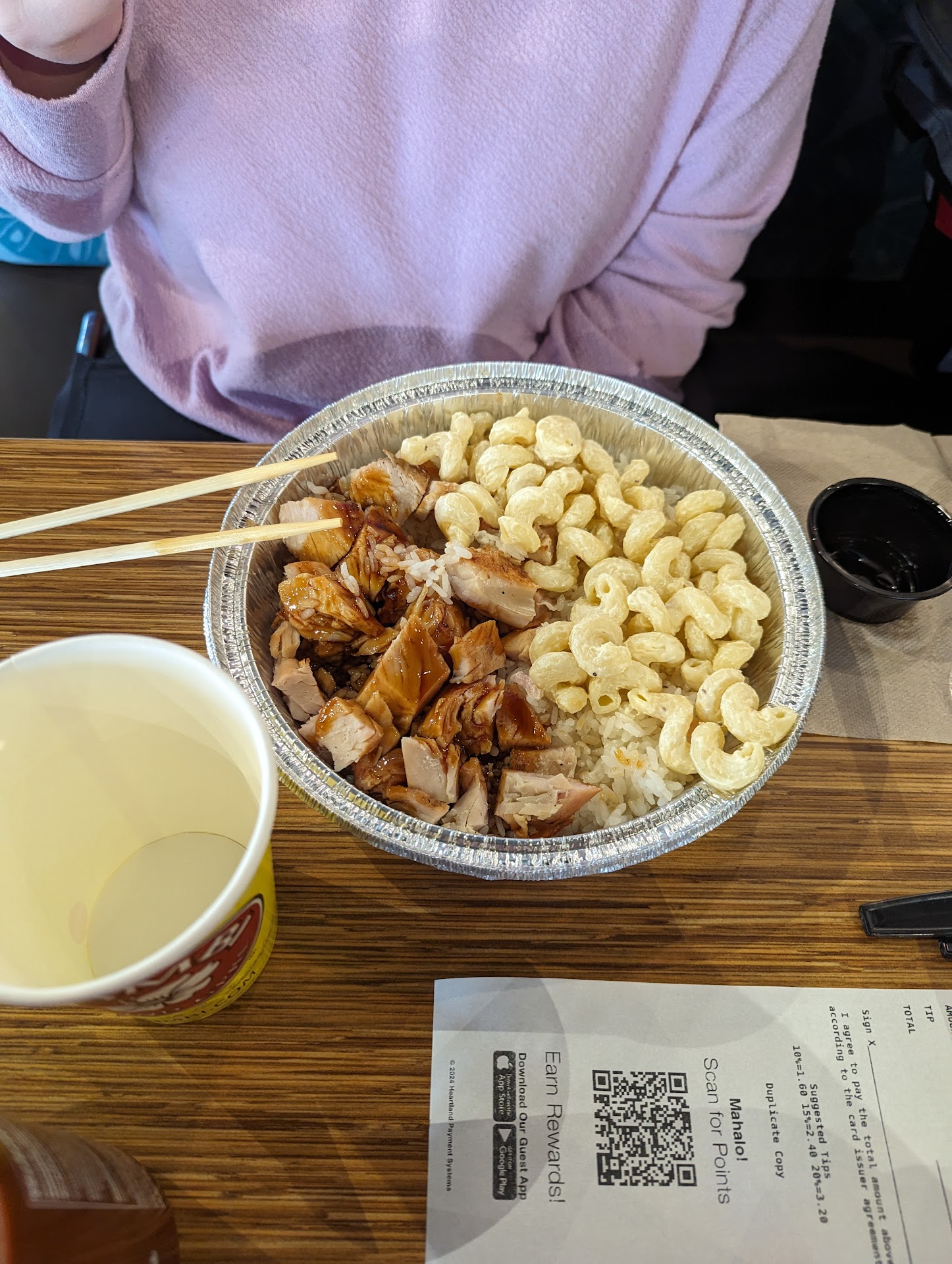 Read moreOrdered online for the first time here. Won't do that again. We chose curbside pickup and put in the vehicle description. It said to pick up in 30 minutes. We were already in the parking lot because we'd just finished shopping at another store. Didn't realize it would take so long to do the online order. So we headed to another shopping center to kill time. Came back a few minutes early. No one came out to deliver our food. Finally went in to pickup after a couple minutes. Not a single customer was in the store. Picked up the food and went home. Looked at the tag. Our food was ready 3 minutes after we ordered it. We could have just picked up right away. The 1 teriyaki bowl with extra chicken we paid 17 bucks for was cold, way too small, and had regular sauce instead of spicy. My husband says we'll never go there again. Sad, but I have to agree. Used to eat here...