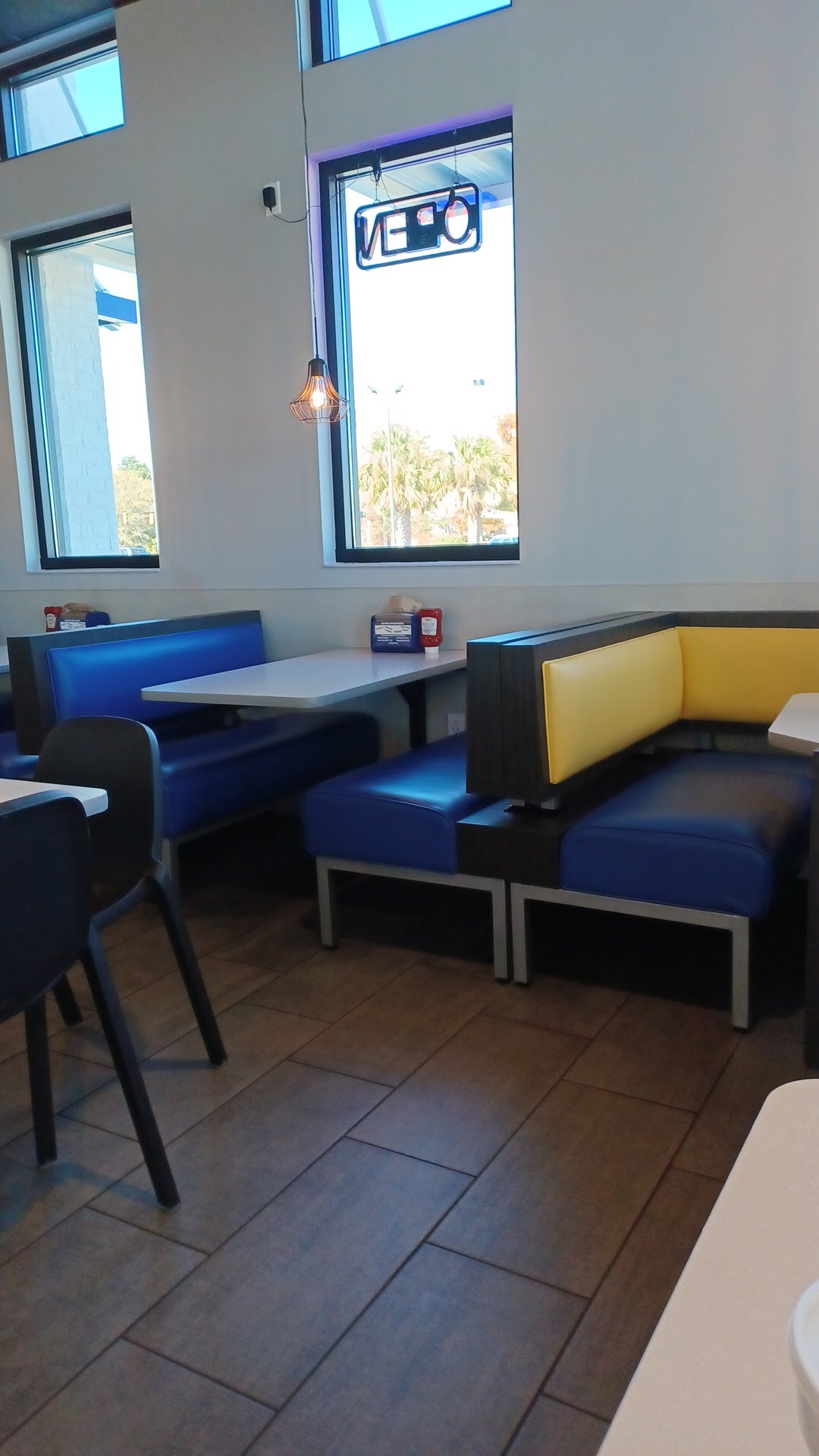 I was passing through Alabama coming from Florida and saw a sign for a chicken place called “foosackly’s” that I had never heard of. Pretty wacky name, but it works! I was curious enough to pull over and I was surprised at how nice the restaurant looks! I’ve never seen a purple-grey-white color scheme on a chain before, but it looks really nice for the branding.