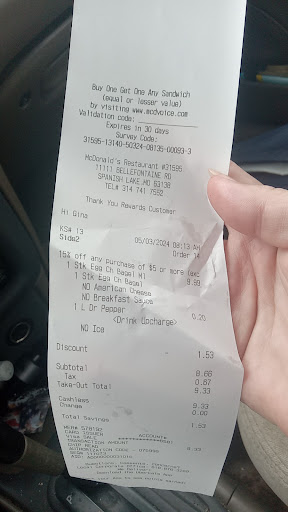 Read moreMcDonald's should tell you before they take your money that your order won't be ready when you get to the pickup window. They don't tell you before you pay because you might cancel the order. When I got to the pickup window, I got my drink. How, I was told my pies weren't ready and asked to move up to the third window. I asked how long it would take because I didn't want to wait. I was told three minutes, so I decided to wait. I don't expect the timing to be exact, but I expect it to be close. When I had waited for seven minutes I called inside asking about my order. While I was on the phone, my order finally arrived. While I was waiting, I had looked at my receipt to see how much the items I ordered cost. No prices were listed on the receipt. The young lady who brought my order didn't know why that was so I asked for a manager. When he came, he didn't seem to know either. They both suggested that it was probably a problem with the printer. I didn't agree with that because everything on the receipt was printed clearly. The prices had just been omitted. I told the manager this was not acceptable as I wanted to be able to check the prices I was charged. I gave him the receipt I had been given and he said he'd see if he could get me a better one. I did finally get a complete receipt. All together, a transaction that should have taken less than five minutes from the time I paid for my order took nearly 20 minutes with no apology for my wasted time. I remembered all over again why I rarely go...
