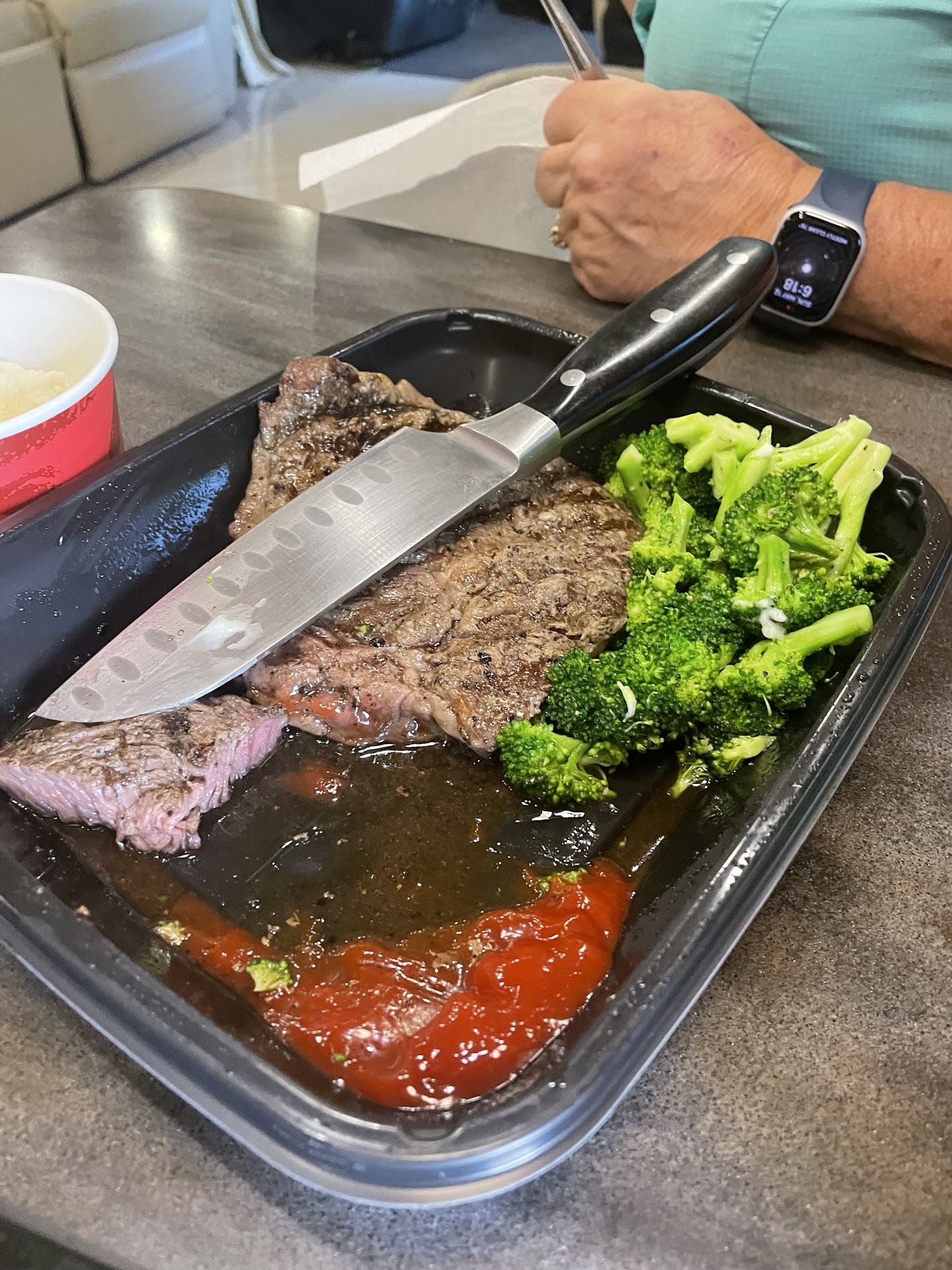My husband and I went in last night (on a Thursday) around 5:15 seeing from outside that it wasn't very busy. We were in a hurry to get to a league game so it appeared that we would be in and out pretty fast. Appearances are deceiving and we should have known better. I've worked in the restaurant industry so I understand staff shortages and such. I'm pretty empathetic so it takes a lot to get me to the point of wanting to leave a bad review. We were seated by a very friendly woman and our server was also very nice and engaging. But then it all went down hill. My husband's water was never brought. I had to ask for it. I ordered a house salad with my entree, which was brought with my dinner. Did that change? I didn't think I had to ask for my salad ahead of time. Maybe times have changed. My fries were soggy and undercooked and my steak was practically still mooing on the plate. I asked for medium-rare but it was raw to the point of being inedible. Again, things happen and I politely asked for a re-fire on the steak. It took about 20 minutes for my steak to come back out and it was very obvious that it was heated in the microwave. I'm a cook.. I've been doing it for over a decade so I know what microwaved meat tastes and feels like. The texture was awful and the flavor was rancid. Now let's move on to my husband's dinner. He asked for grilled chicken with a side of Mac and cheese and broccoli. They brought him Mac and cheese and mashed potatoes that were so dry, he had to ask for a side of butter to dump on them. He ordered a side of shrimp and it never came so they had to put in another order for it. By the time everything was "fixed" and arrived, we had to leave because we were going to be late to our game. We had to box our food and left hungry. Our server could sense that we were frustrated because of the way my husband asked for take out boxes. She actually called us out on our attitudes, asking us "Do you have somewhere to be or is my service just that bad?" People, I'm not kidding!!! At this point, her entire demeanor changed and she became very defensive. We were also never asked if we wanted refills on our drinks or my husband's beer. We will never go back to this location. It was...