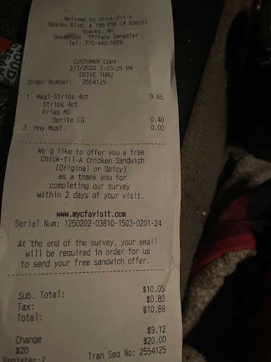 Read moreThis saddens me to write this review. I’ve always had a really good experience with this chick fil a location. Tonight was not good. I placed my order through the mobile app and we got in the drive thru. It was not moving at all for about 5 minutes. I changed the order to pick up in the store and got out of the car. Once inside I stood under the pick up sign for at least 5 minutes watching 3 young teens chat away behind the counter. Another lady went over to the girls and motioned towards me. One of the girls came over and asked if she could help me. She then said my order would be ready shortly. A you man brought my order out another 5 minutes later without the drinks. I asked about or drinks and he had to ask what we ordered. When he brought the drinks I then had to ask for straws. This experience was particularly disappointing because chick fil a has always showed that they have bigger expectations and run their stores a lot better than other chain restaurants. So in short the stores was running very slowly, three teens sat around chatting instead of helping customers and the young boy was not very polite when...