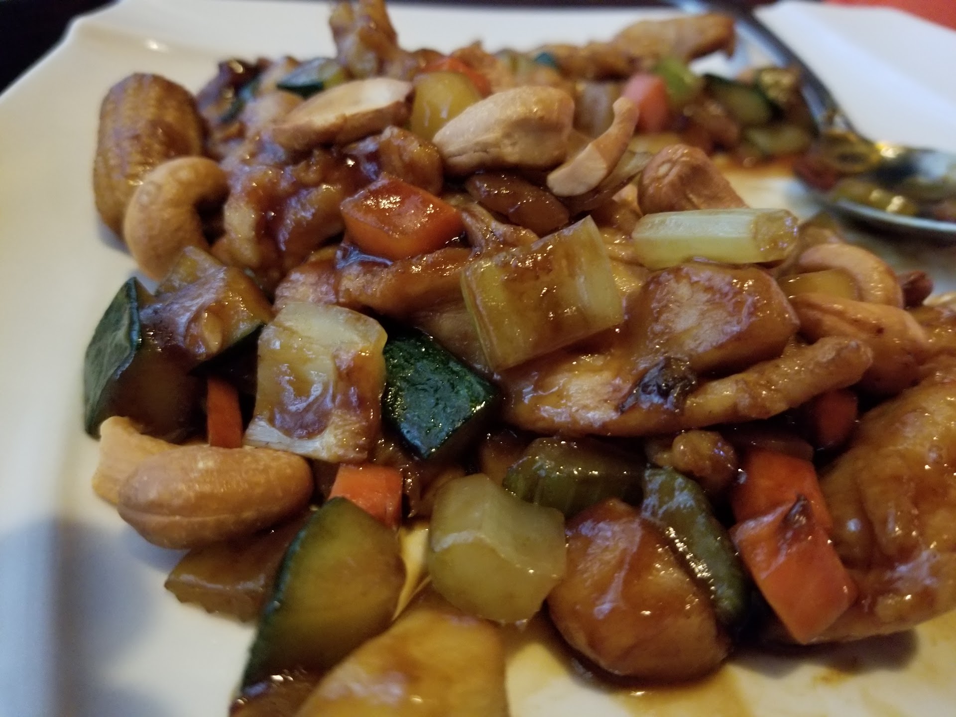 We were quickly seated and drink orders taken. We weren't rushed and took our time pursuing the menu. They offer some Chinese, Thai and a fusion of both. The wife had a hibachi shrimp and I had a yellow curry with chicken. I also got BBQ pork appetizer.