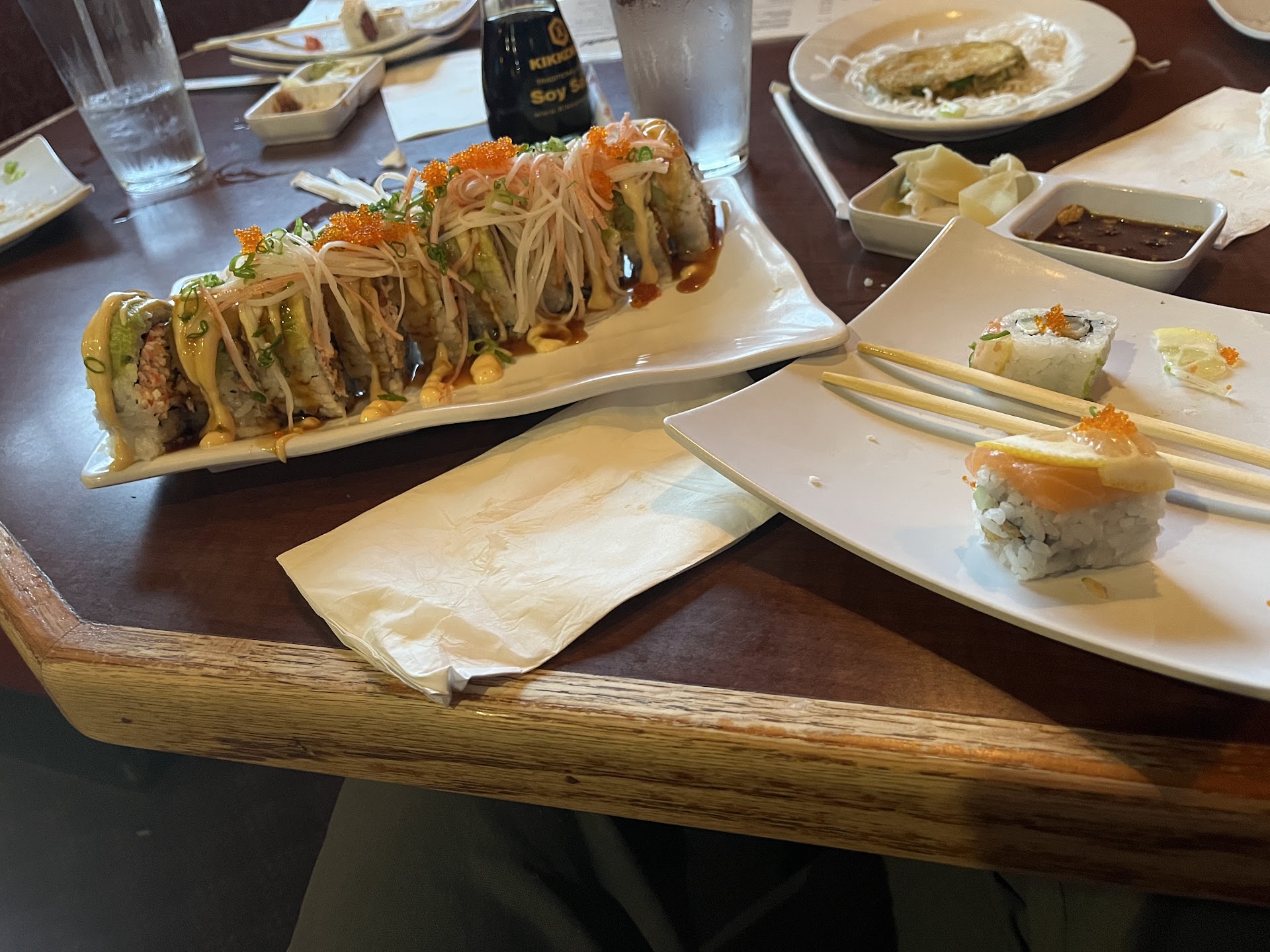 You have everything from cooked food to sushi, so it caters to everyone's needs. Last time I was there they had an all you can eat lunch sushi for a reasonable price. I miss this restaurant and eventually I will be back since I have family that still lives there. I just hope some of the people I know...