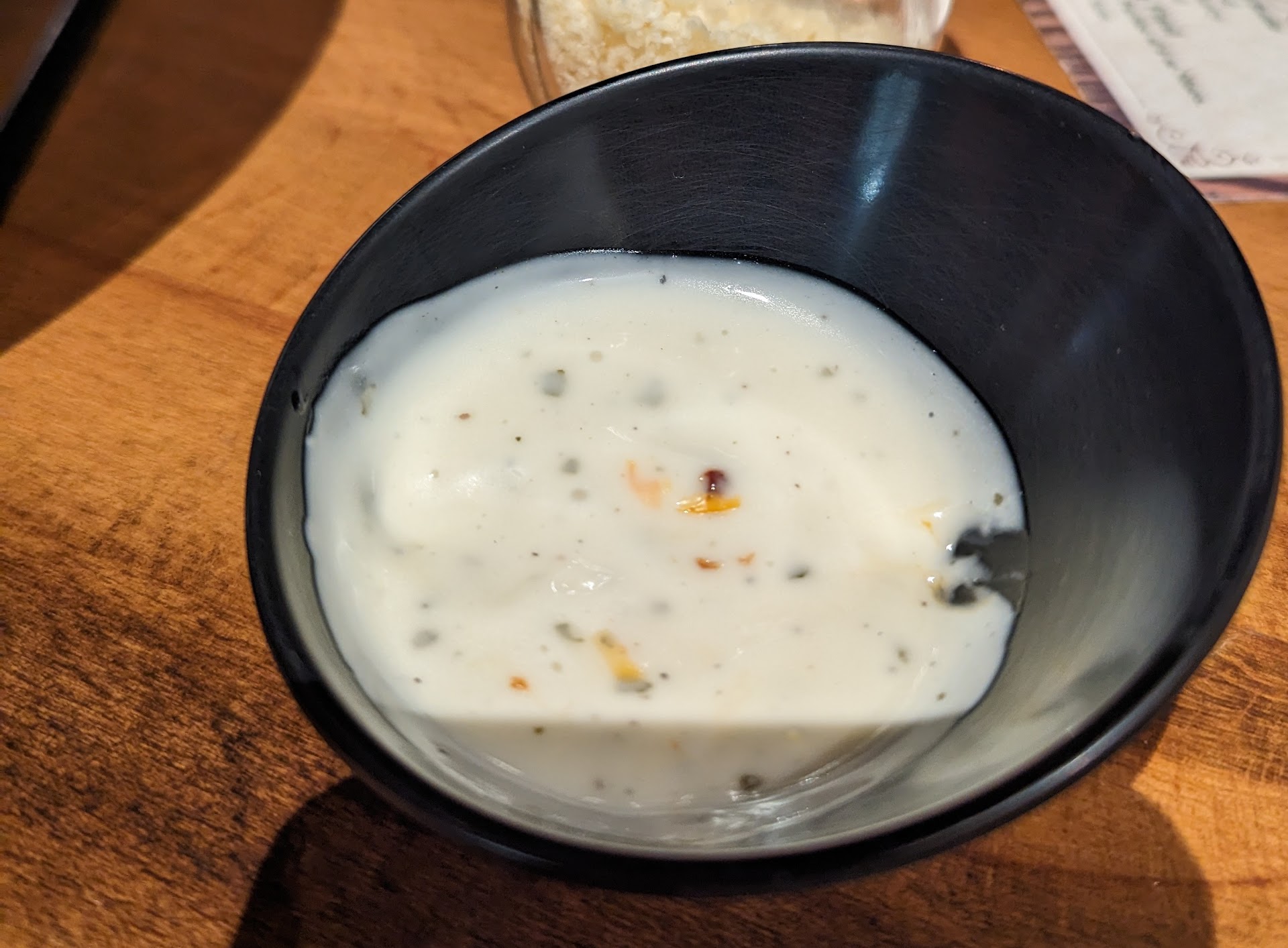 But the biggest insult to injury was when I ordered a side of ranch for $3, and after getting heckled for it by the waiter, was given 5 tbsp of what I have provided a photo of: cheap processed paste-y gross ranch you buy in bulk from the restaurant supply. For $3 for such a small side the ranch should have been in-house. I mean heck, guacamole at Chipotle is cheaper than that at $2.65 and it is at least made fresh daily.
