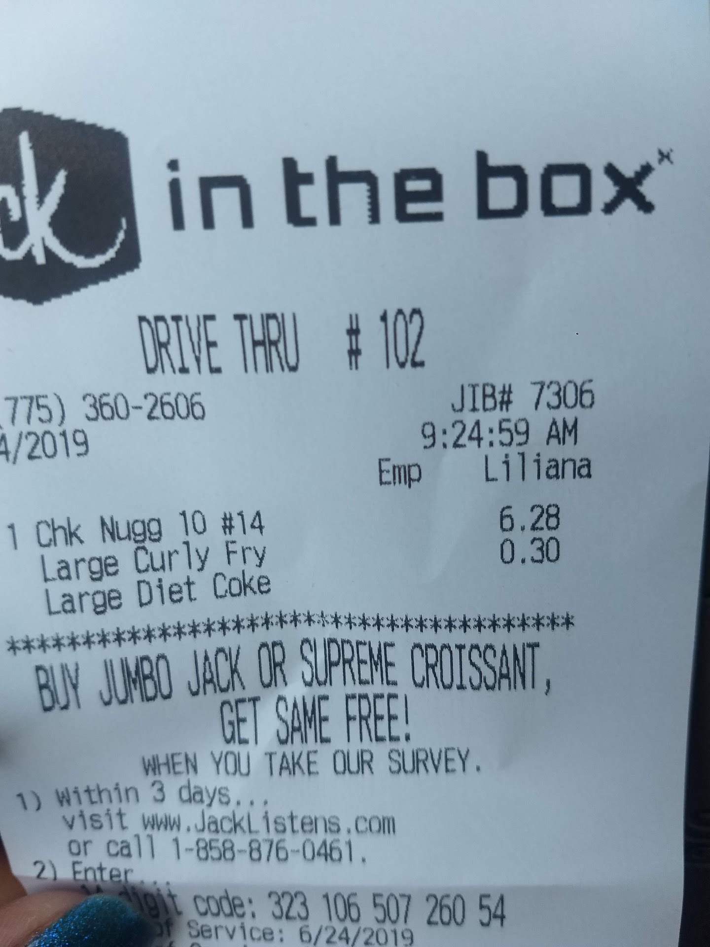 Read moreI go here all the time. At least once a week. And I've been going here for almost 2 years now. I can definitely tell you that this is the worst Jack in the box I've ever been to. And I keep going.. Hoping they'd get better. But they don't. They get worse. The first year I started going here it was fine, even during covid. I mean sometimes I'd get the occasional they put cheese when I asked not to, that's whatever, it happens. But this past year, my god.. it's just so bad. Literally every single time I go here there's something wrong with my food. Every time. Doesn't fail. Today I ordered a 27 with no cheese, and I got a 22 WITH cheese. Not when the same sandwich. I've gotten home and not had any tacos when I literally ordered 6. Like how are you gonna forget the biggest quantity item that I ordered. I just don't understand how hard it is to do this. Plus the amount of time I spend in the drive thru, if you're taking that long, you should be reading the order and getting it perfectly. For all the money I've spent there, I feel like I should get like a hundred dollar gift card for free for all the wasted money I've lost going there. Absolutely the worst.