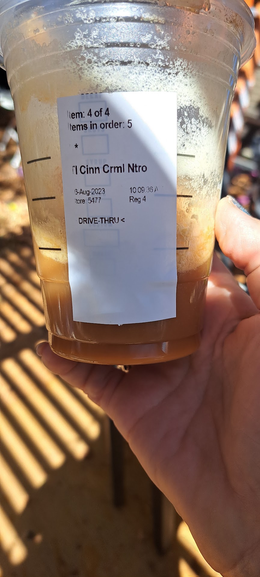 Read moreWe absolutely love Starbucks but I think that after Saturday we will probably never go back to this location. Wife special needs daughter and I all tried to order online. Daughter got her order in but both wife and I couldn't get our orders to go in. Online said they were out of wife's frappuccino and my cold brew. Out of cold brew???? So we decided to go in the store. We were in the store 15 minutes and they only waited on 2 people. So we decided to leave. Daughter was just about to get her order so wife and I got out of line and we stepped out the door to wait for her. She got her order (which wasn't even close to what she ordered) and met us in the truck. When she got in I could smell coffee. Whatever they gave her was a hot coffee based drink but service was sooooo bad we decided to not go back in. $5.90 for something she would never drink. I feel they took advantage of a special needs child. Here is a picture of her order which was a cream based...