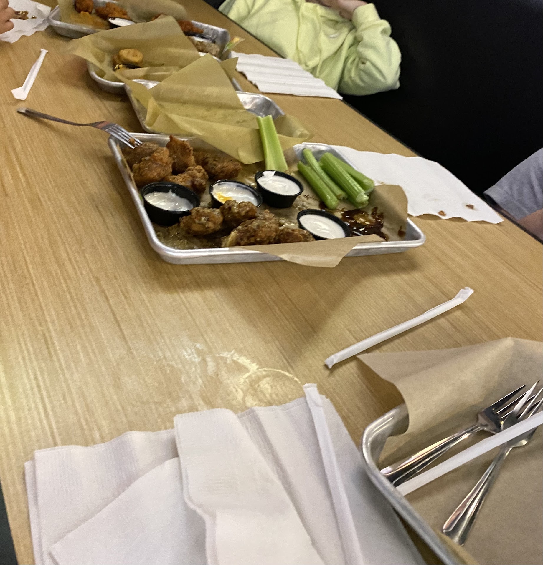 Read moreThe service here is the worst service you will experience in the upstate. I put the full blame on management. Our server was very young evidently new to waiting tables. It appeared she was offered zero training. A poor manager would have told her what to do, a good manager would have stepped in tobassist and demonstate to her. The manager in question was worse than poor. When notified that half the people at our table had already recieved their food, waited until it was nearly too cold to eat , then proceeded to eat to avoid cold food (which by then 10 mins so actually was cold and only a small portion of it eaten) , at the behest of the rest of the party we were still waiting 15 min later for the rest of the food, her response was not an apology and a correction her response was to make an excuse. She said that they only had three working friers. We told her we noticed other tables that came in that were seated near us AFTER the first half of our 4 top party had already abandon eating cold food, had not only ordered but had also recieved their food. She asked us to wait another moment so she could check on our order. She returned with only one of two remaining plates and said sorry chicken wings just take a long time to cook. We mistakenly ordered CHICKEN WINGS IN A CHICKEN WING RESTAURANT. When told that was unacceptable we wanted the check she left with that plate of wings. As soon as she left with that order coincidentally another table next to us recieved an exact same size order to the order that just left our table that had literally just ordered minutes before while we were waiting on the manager. (It certainly appeared that the wings went back to the kitchen from our table then immediately to another table, hopefully not because I am prettybsure that is illegal.) Another third table full of people got up and walked out before recieving their drinks. I feel they may have also been paying attention and possibly witnessed the same seemingly apparent food transfer from table to table. We paid for our drinks and appetizer plus were charged in full for the portion of food that was too cold to finish and left. I generally give restaurants a second chance, but I will not be giving this location a second chance. I hope the health department takes a good long look at this place and the way it is...