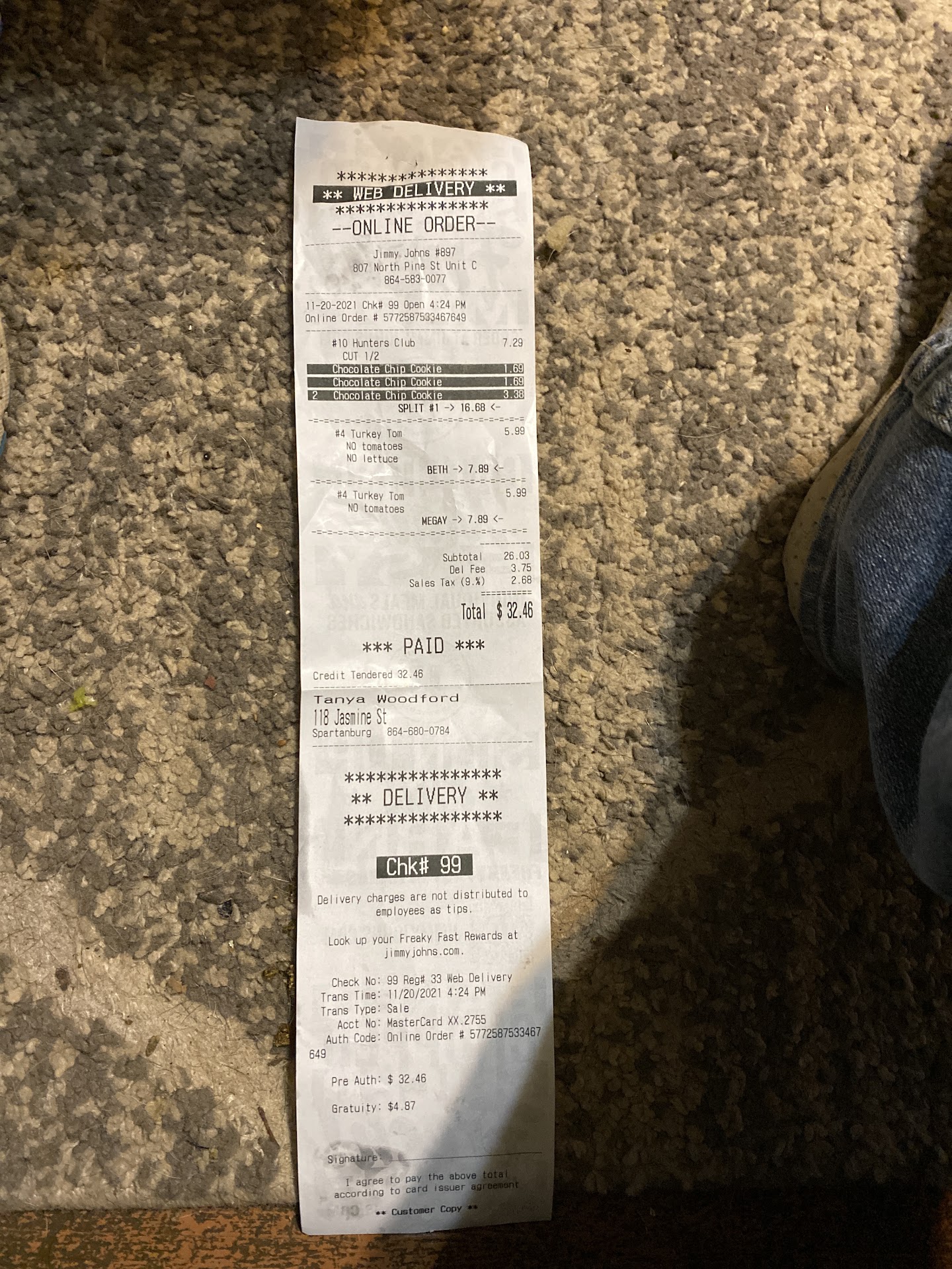 Read moreThis location always gets our order wrong. They focus to much on fast and not getting it right. This past time my husband got us food. He ordered me a turkey tom and well all I got was turkey and bread nothing else! I mean really? No mayo not lettuce I mean literally bread and turkey. Not much turkey either. Looks like it was thrown together. Not much effort. I think I'll go to Jersey Mike's it's closer anyhow. I'm fed up with this location in Spartanburg. Tired of paying for things to be wrong. I love your subs guys but come on. Listen more to your customer and getting things right not just getting it done freaky fast! I miss where I worked before the location in Greenville on Haywood does a great job. I'd rather drive there at least an hour drive will get me the sandwich I want and...
