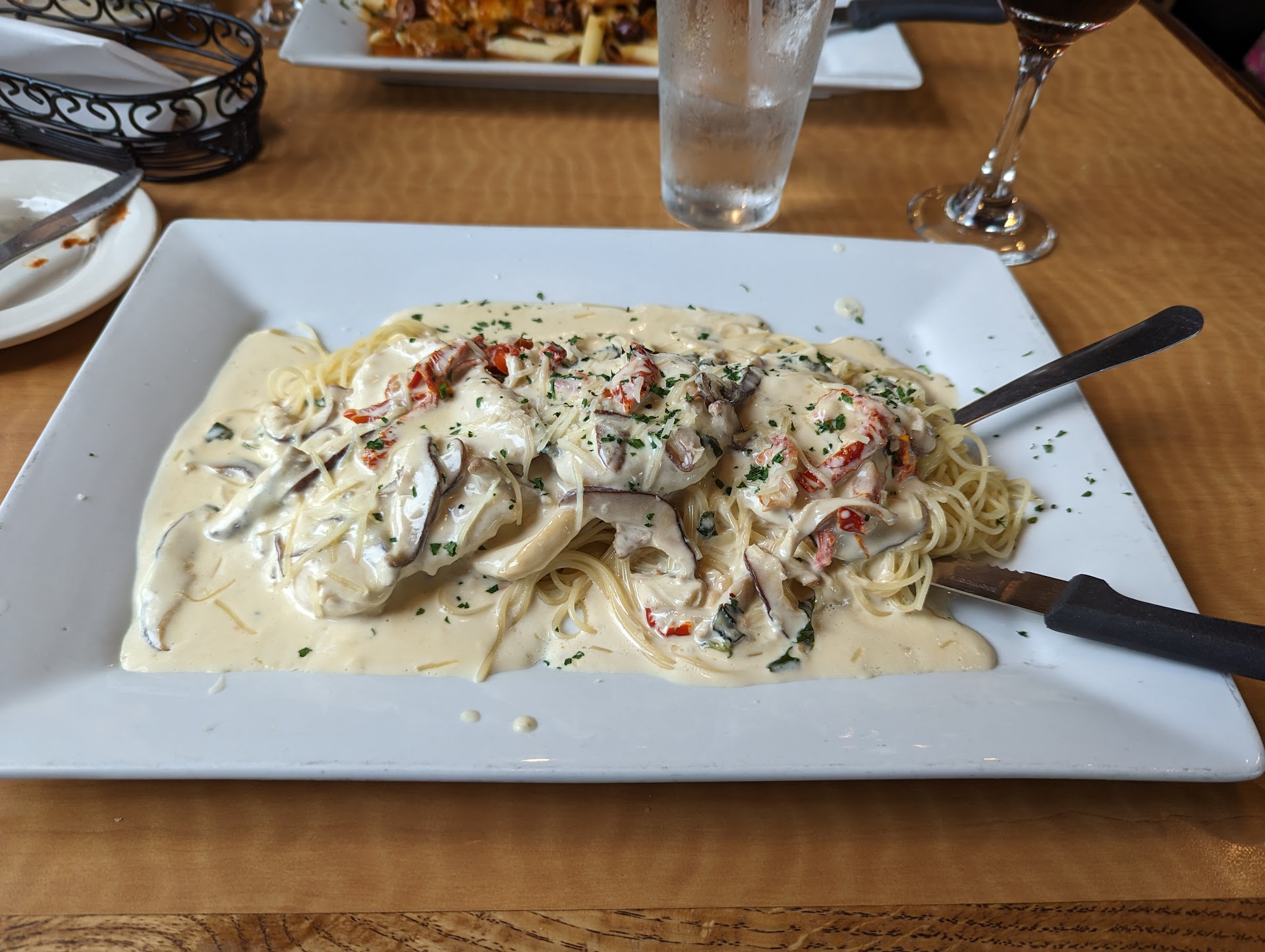 Read moreWe are traveling through SC and stopped here for dinner. Since my husband just had hip replacement, we asked for a booth that would be softer than the chairs. The owner was put off by our request and told us we would have to wait, despite empty tables that remained empty throughout our dinner. We waited 20 minutes with other customers being seated, including a couple in booths. She finally sat us, not even offering the wine list or any words at all. We ordered bruschetta and two entrees. We never got the bruschetta, but did get the âcomplementaryâ salad that was about 4 bites! Our entrees came out, and we were not impressed. It was obvious that my husbandâs lasagna was not fresh made, but reheated with the center still cold. I had the eggplant; it was a good flavor, but very mushy and not pleasant to eat. Then came the check with an already added credit card fee (before weâd even requested to pay by any method). I would typically write this off as a loss and move on, but the owner here was so unpleasant that I felt others should know before spending your money here. She did not seem to appreciate her customers or her staff. I think we would have had a much more enjoyable dinner at...