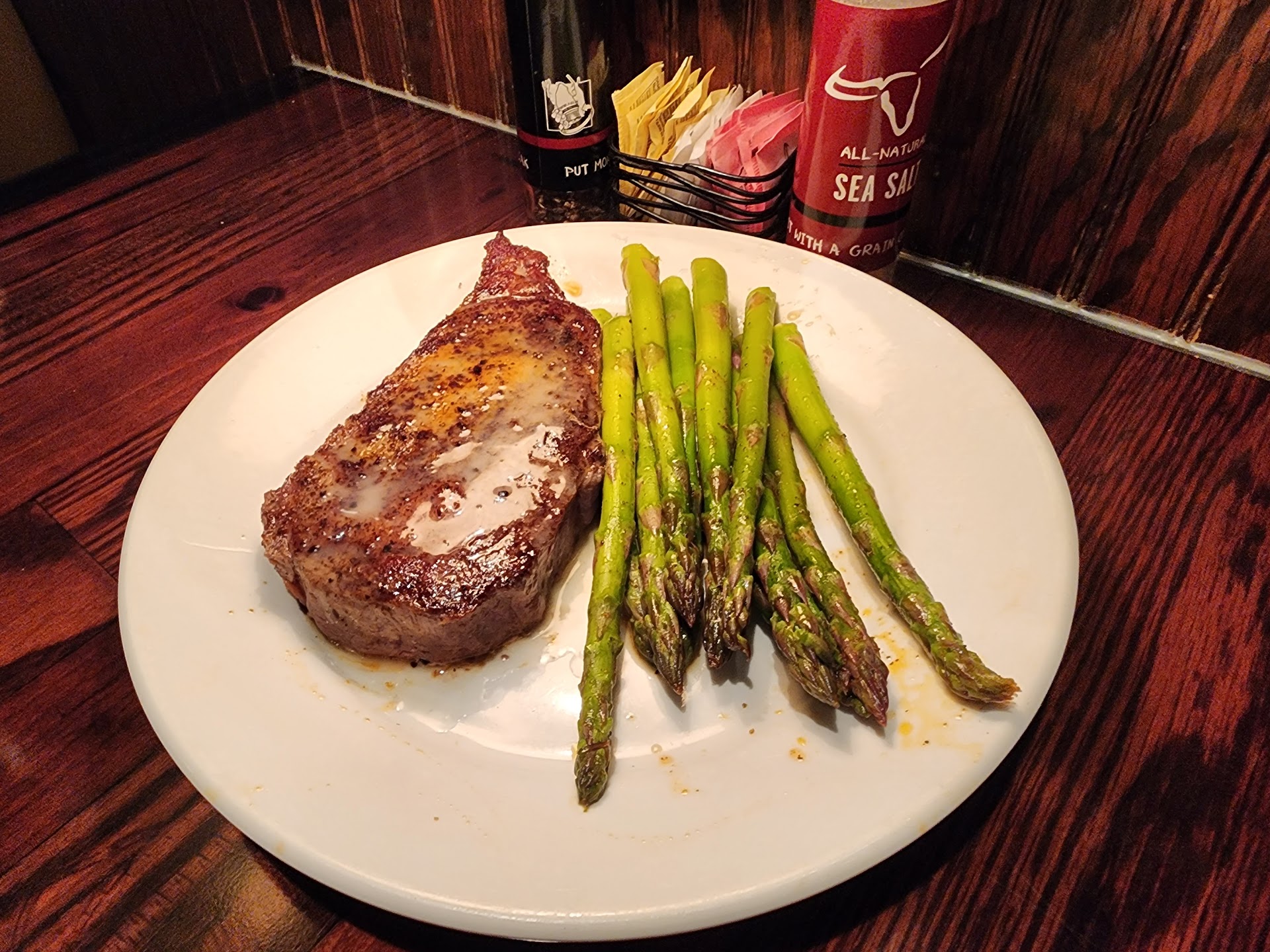 The food was fantastic, steaks were cooked perfectly to order. HOWEVER I had one small issue. If you are like myself, and you don't enjoy/consume much salt, or have medical issues with salt/sodium, I would highly suggest asking for no/little seasoning/butter on your steak.
