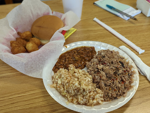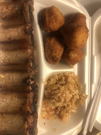 Read moreVisited 1/27/21., around 7PM. (FYI: No employees were wearing masks, not even in kitchen.) Ordered combo plate to go: ribs, pulled pork, slaw, subbed stew instead of fries, hush puppies. Half rack not fall-off-the-bone style but pretty good and not dried out. Pulled pork was also pretty good and not dry. Slaw was not my style; it was vinegary and not sweet. Stew was very good with nice balance of meat, veggies. Hush puppies were really good. Server said potato salad and onion rings are good so it might warrant another trip to try those. Also, food came out really quickly. Don’t forget to ask for extra sauce and ketchup. Good option if you’re...