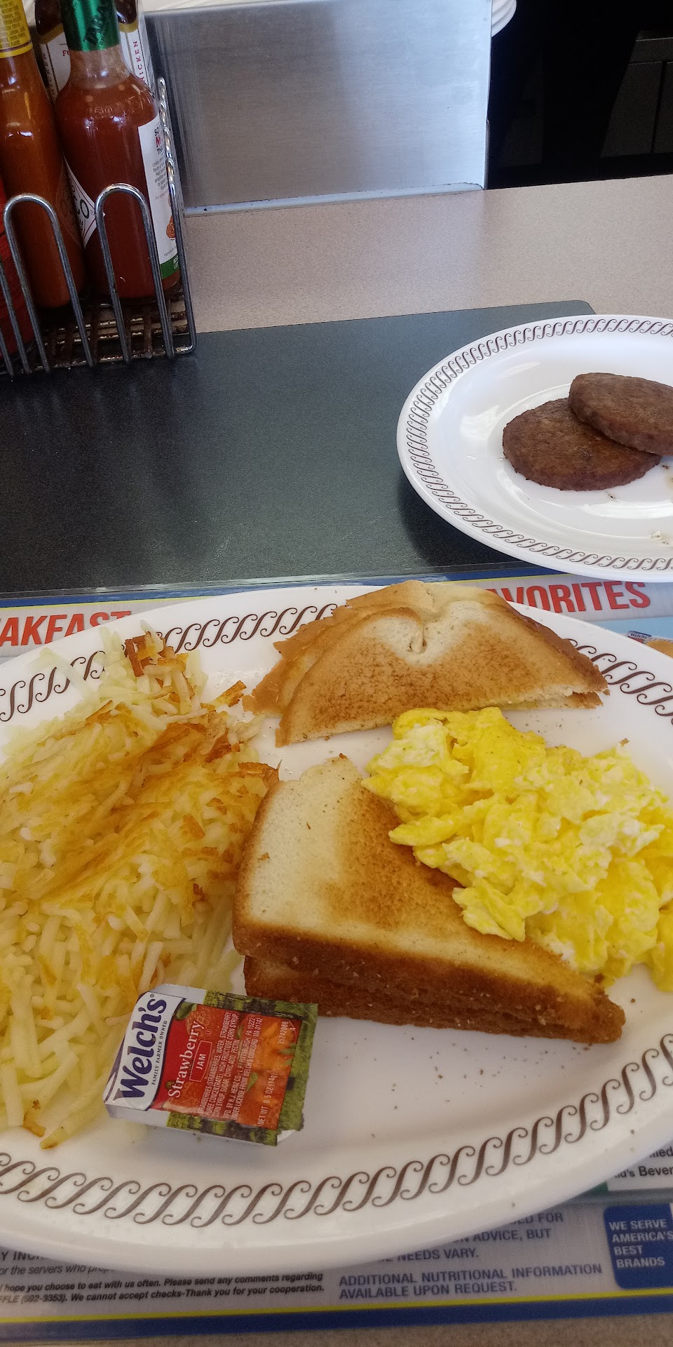 Read moreMy daughter is a Waffle House fanatic so we frequent them a lot. In order to keep myself from getting burnt out we visit as many locations as we can in an attempt to find our favorite. Let's just say this wasn't it. From greet to ticket the experience was sub-par to the already basic service standard that WH used to be known for. As a professional food and Beverage manager I was disappointed in the acting manager's ability to handle a disgruntled customer who came in with a large Togo order. We were the only table in the whole restaurant. Yet our table and seat were dirty and I had to ask for almost everything....my coffee, my syrup, a spoon, a refill, etc. The waitress was obviously disinterested in our table over her personal conversation. The two workers spoke as if we weren't present there. Even the manager tried to get the server to understand inappropriate language in an open kitchen setting. And I quote "And just what the HELL is this..." the server screams from the dish sink to the bathroom essentially talking over me and my FIVE yr old. None of this singularly would be bothersome but when you add it all up. It's a no for me. 🙅🏾♀️Flies, dirty/sticky tables, inattentive staff, altercations between customers and managers over simply rectifiable issues, and I get the strong feeling they "judge a book by it's cover" here....