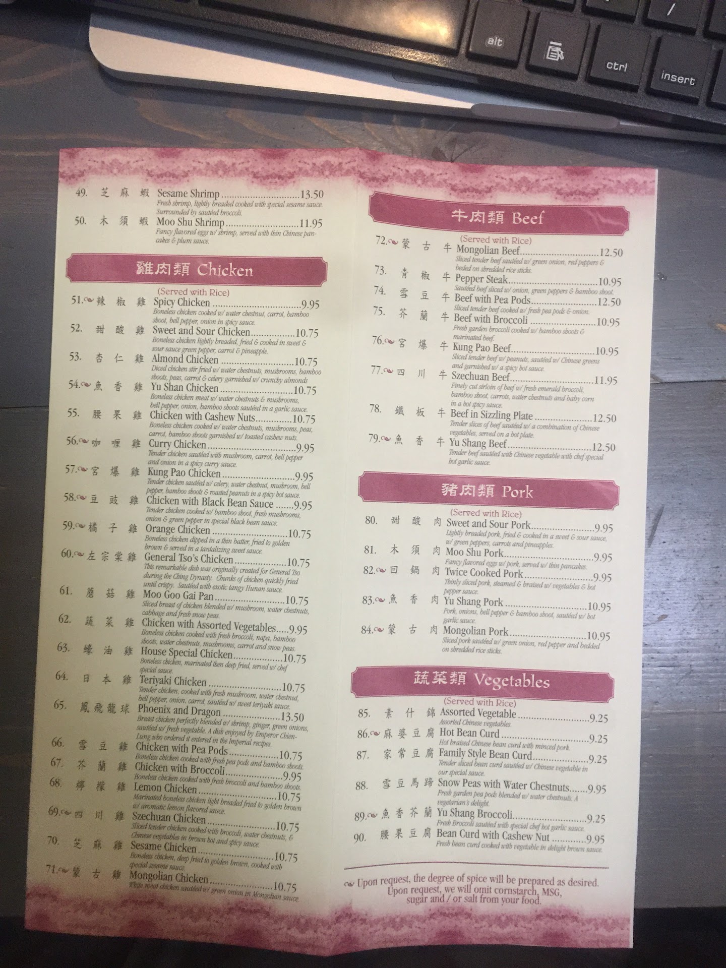 Is there an option for zero stars? Do NOT go here! They could take a little pride in how their food looks. We got two orders of sweet and sour chicken, one of Generals chicken. They arrived on a plain plate. No veggie or fruit garnish, no rice. The meals were supposed to come with rice. We waited assuming we would get our rice. Nope. We called to the waitress and said “Maam, can we get our rice?” She looked over her shoulder and walked away. We had to go to the register and ask for our check. Cold unappealing food, crappy service for $92. They had pre-calculated tips so there wasn’t an option to give lower than 15%. When paying I explained that we didn’t get our rice and we were offered it to go with a “Sorry” yet still got charged for it. I asked her to check the bill and upon reading it back, I clearly said, “It was NOt worth THaT” to which the reply was “Sorry”. I feel they should have offered a discount of some sort for the poor meal...