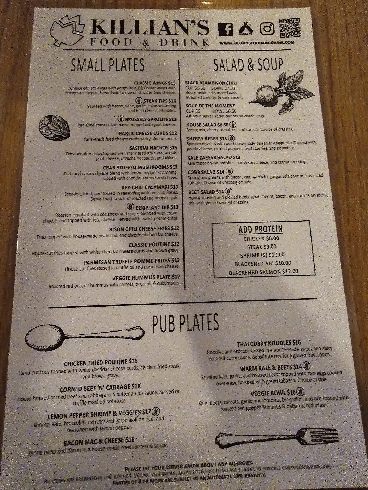 We were very happy to have chosen Killians. It may not be the cheapest option in town for lunch (each meal was about $12--$13, and the beer was about $4), but the portions were generous, everything was delicious, and the...