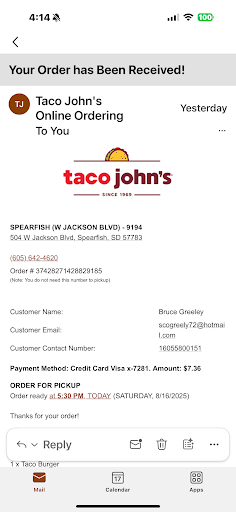 The food here is somewhat hit and miss. Sometimes it's awesome and other times not so much. I am a huge taco John's fan and frequent the franchise throughout the midwest. Out of every franchise I have visited (which is a lot), the Spearfish location is by far my least favorite. It's not the food which i do not enjoy, it is the customer service. Every time i come to this location, i always feel unwelcome. The staff usually has no clue what is going on and their frustrations come out on you the customer. I have been through the drive thru and have asked for jalapenos and hot sauces , which the drive thru person says sorry they are busy and cannot get the sauces or jalapenos. I then go inside to retrieve my sauces and jalapenos and notice two employees standing around doing nothing. Very frustrating,(This was not the first time by far). I have made MANY complaints on the Taco John's app, which nothing ever comes of them. Not sure I will be going back, and that's frustrating because I am such a...