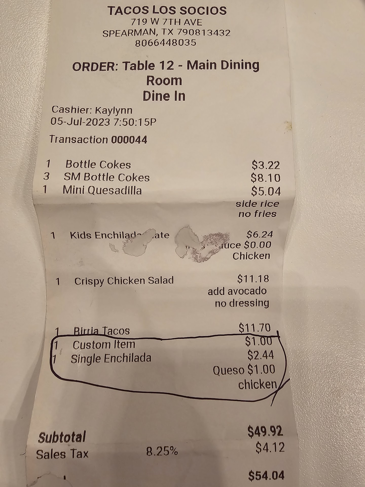 I went to this place with my Family around 8:00 pm. As we walked in there's 3 young waitresses standing at outer corner of the register. One waitress was calling out another employee (whom was standing behind the register ) there for some personal work gossip. I ordered the Birria Tacos, Crispy chicken salad, kids quesadilla plate, kids single enchilada plate. Before ordering the kids enchilada plate, I asked the waitress if the green sauce for the kids enchilada was spicy. The waitress said NO. So I ordered it for my Grandaughter. The waitress after a few minutes serves the Kid enchilada plate, so i tasted the sauce to make sure it's not spicy. It was spicy. I then told the waitress that the kid enchilada was spicy , and that if she could please change it to a kid queso chicken enchilada ( which is an option on the kids menu). The waitress takes the plate to the cook, and I could literally hear the woman cook hollering to the waitress that I ordered it and that I have to pay for it. The waitress comes back again with the same plate and tells me that I have to pay for it, and I asked her why do I have to pay for it if you're the one that told me that it wasn't spicy. She said again that I can pay and order something else. By then I told the waitress to place an order for a single queso chicken enchilada. She said ok, it'll be $2.44 . I said that's fine to place the order. Shortly after I'm served the Birria Tacos plate( no sides), but was still charged the full price. Birria Tacos were not good. They were burnt. The consome taste as if it had been re-heated several times through out the day. I tried eating them, just couldn't. I walked to the register with a smile on my face to pay . The waitress that checked me out didn't ask me if Everything was ok, nor did she say Thank you after I paid. After I paid , I looked at the reciept. I was charged $4.22 for a single queso chicken enchilada. Hidden fees is not ethical . This is not the first time that I've been to this restaurant. I've returned a few times hoping the food and service will be better, hasn't improved. I personally think that the Food truck version was better. *I don't recommend this restaurant.Too pricy for not so good customer...