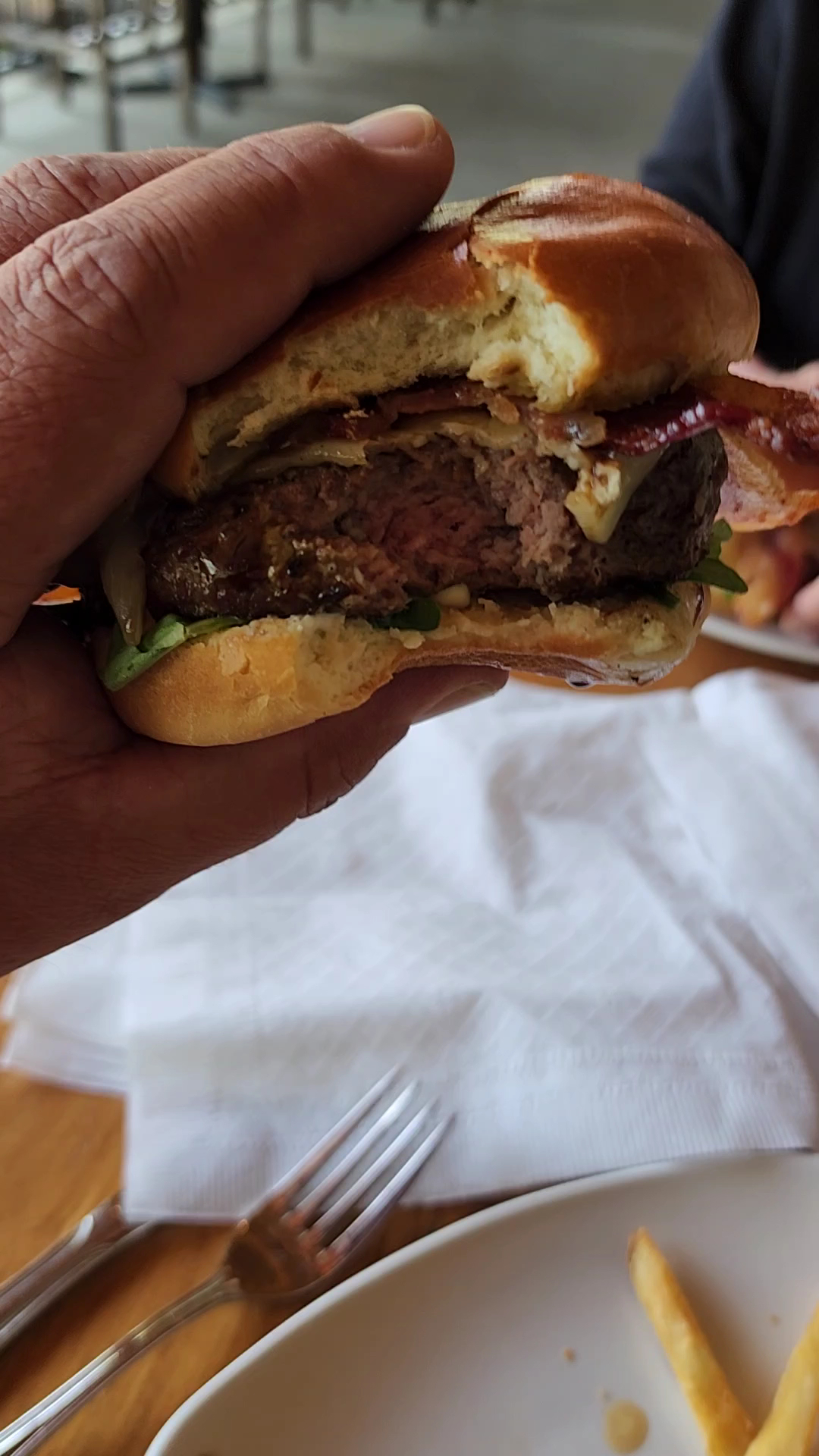 Read moreBig Woods delivers on every aspect of a fun, relaxed casual dining experience. Located on Main Street in Speedway, you instantly benefit from the lovely revitalized environment years in the making. Parking is reasonably easy (for 99% of diners...more on that later). The building is fairly new, and extremely well kept, especially considering the volume that it is capable of. A warm sincerely smiley greeting was given within 2 seconds of opening the door. We were seated right away at a lovely outdoor table on the GIGANTIC covered wrap around porch. We were greeted by Jake, who took perfect care of us from beginning to end. He was supremely attentive to our order, and didn't mind my mom and I chatting him up the whole time...awesome guy (oh, also on a previous visit, Tony took amazing care of us as well. Ask for Tony the Tiger!!! He's GRRRRRREAT!!!). Our beers from Quaff On were perfect, and their bloody Mary mix is worth buying a bottle to take home. We both smashed our Candied bacon bomb burgers with delight. Seared crisp, juicy and cooked to perfect medium, a truly proper thick burger. The prices are absolutely fair for such a lovely experience. We will certainly be back. A lot.